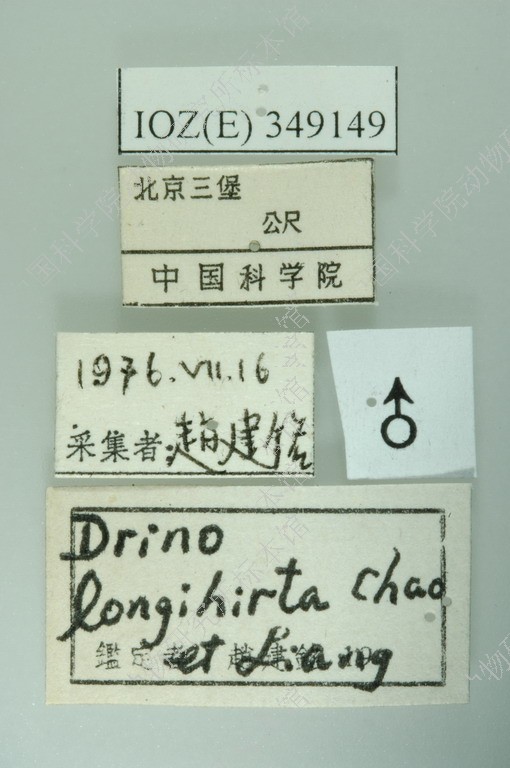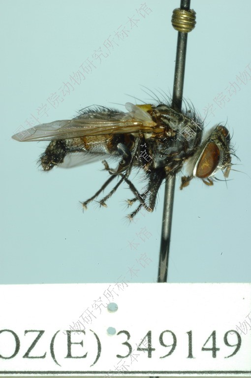 描述♂ 体中型,底色黑,覆灰白色或淡黄色粉被。间额、触角、翅肩鳞、前缘基鳞、足均黑色;下颚须暗黄色。头部复眼被短毛,额与复眼大致等宽,间额两侧缘平行,其宽度为侧额宽度的2/5,单眼鬃缺如,内顶鬃向后方平行伸展,内侧额鬃每侧3-4根,向后方伸展,额鬃下降至侧颜最前方一根达触角第2节末端水平,侧颜裸,其宽度约为触角第3节宽的1.3倍,触角第3节为第2节长的2.5-3倍,后头上方在眼后鬃后方一般无黑色小鬃。胸部被竖立的黑毛,覆黄色粉被,背面具4个黑纵条,肩胛3根基鬃排列成一直线;小盾片基缘黑色,其余部分黄色,小盾侧鬃每侧2根,两小盾亚端鬃之间的距离等于亚端鬃至同侧基鬃的距离;翅r4+5脉基部仅具1根小鬃,中脉心角至中肘横脉的距离为心角至翅后缘距离的1.5倍;中胫具4-5根前背鬃,中间1根粗大,上方2-3根和下方的1根较小。腹部被竖立的长毛,覆灰白色粉被,第2-4背板两侧具红黄色斑,第4、5背板腹面两侧具大形密毛斑,密毛斑的毛特细而密,约占背板腹面的4/5。 体长 7 mm
