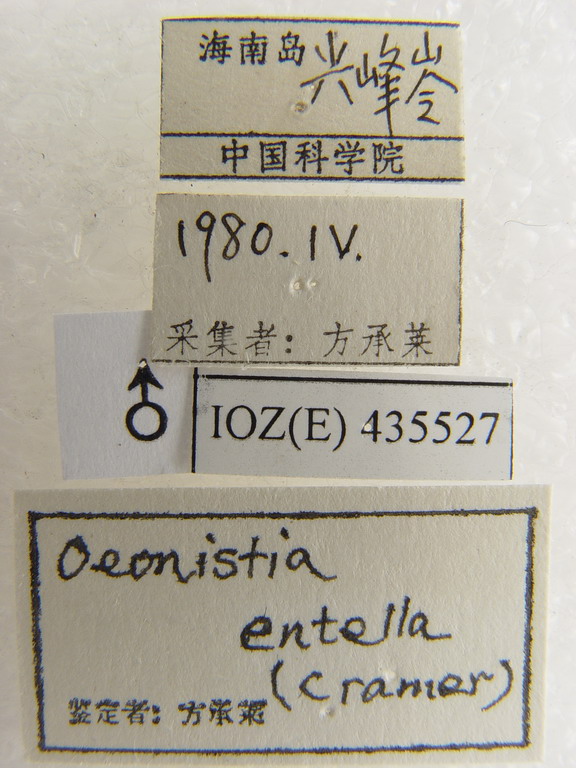 翅展雄38mm, 雌46mm。橙黄色, 下唇须端部及触角黑色, 翅基片及胸金属蓝绿色, 足除基节外金属蓝绿色, 腹黄色、背面前半部稍灰;前翅前缘纵带金属蓝绿色, 中带金属蓝绿色、在中室下方向内扩展成大方块, 端区一大黑斑从前缘外线处斜至臀角, 翅顶一黄圆斑;后翅黄色。