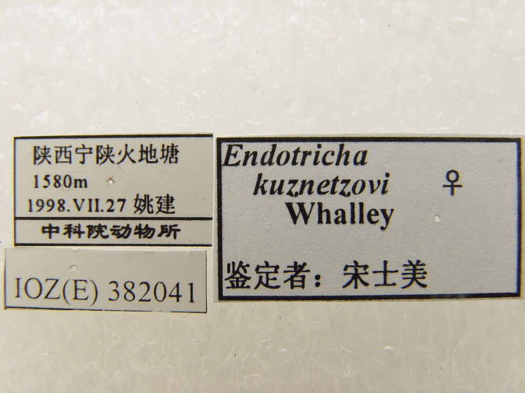 翅展18-22mm。头橘黄色。胸部橘黄色,杂有白色鳞片。前翅前缘黑色,有白色刻点,基域及亚基域砖红色,内横线黑色,中室端脉斑黄色,亚外缘线黑色,与外缘平行,外缘红褐色散布有黑色鳞片,外缘线黑色,缘毛白色。后翅红褐色,中域黄色内、外边缘黑色,无亚外缘线。雄性外生殖器:爪形突戟形,顶端平,侧突短钝;背兜侧突圆;颚形突圆;抱器瓣短宽,顶端钝尖;阳端基环板状;阳茎粗、直筒状,内有1枚顶端具刺的板状角状器。