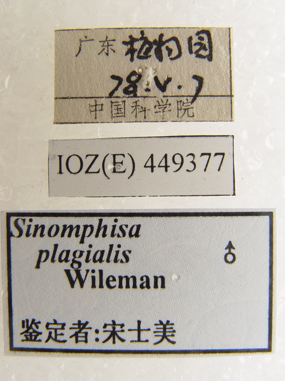 翅展33mm。头圆、褐色。下唇须前伸,第3节裸露。触角粗大,胸腹部粗状、淡褐色。翅白色,翅脉黑色。前翅亚基线黑褐色、锯齿状双重平行,内横线黑褐色,中室内有1黑点,中室端脉斑黑褐色、肾状,中室下黑褐色,外横线及亚外缘线黑褐色波纹状弯曲,两线中部向外突出成角并在臀角附近连接。后翅从中室端向后缘伸出黑色中横线,外横线及亚外缘线与前翅同。双翅缘毛白色。雄性外生殖器:爪形突弯曲细长,端部略膨大,背侧具毛;抱器瓣宽圆,抱器向腹侧伸出弯曲尖突,背面板状;抱器腹端尖锐;阳端基环长板状;阳茎细长,基部弯曲,内有1细长针状及1束刺状角状器。