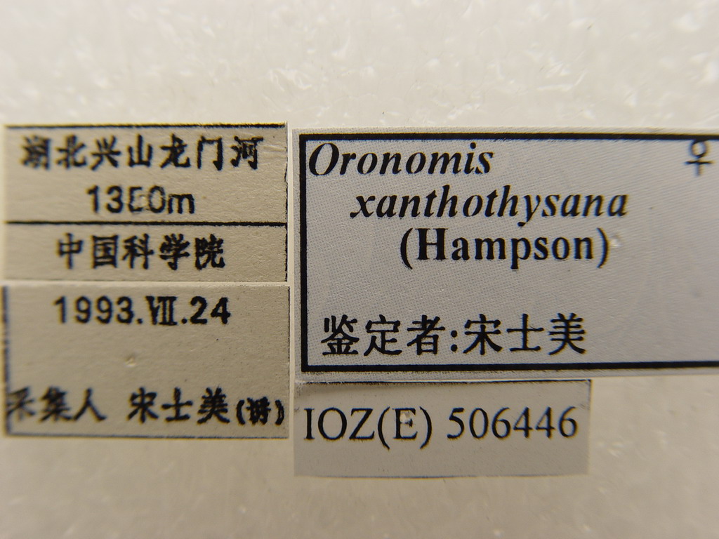 描述 翅展34-38mm。额棕褐色,鳞毛向前突出,两侧有白色条纹;头顶、触角及下颚须棕褐色;下唇须向前伸,棕褐色,基部白色。胸、腹部背面棕褐色,腹面及足白色;胸部腹面密布白色细长毛;前足褐色,胫节有白色环带,雄性后足外中距短小。前翅狭长,棕褐色,顶角突出,内横线黑色,波纹状向外倾斜;中室内有1黑点,中室端脉斑黑色、月牙形;外横线锯齿状,在R5至Cu2脉间向外弯曲。后翅外横线细锯齿状。双翅外缘有1排黑点,缘毛金黄色。雄性外生殖器:爪形突舌状,顶端圆;抱器瓣基部狭长,端部宽阔,腹侧突出成角,抱器腹端向基部伸出1细长突起;阳端基环椭圆形;阳茎筒状、弯曲,基部略粗,内有1排针状角状器。