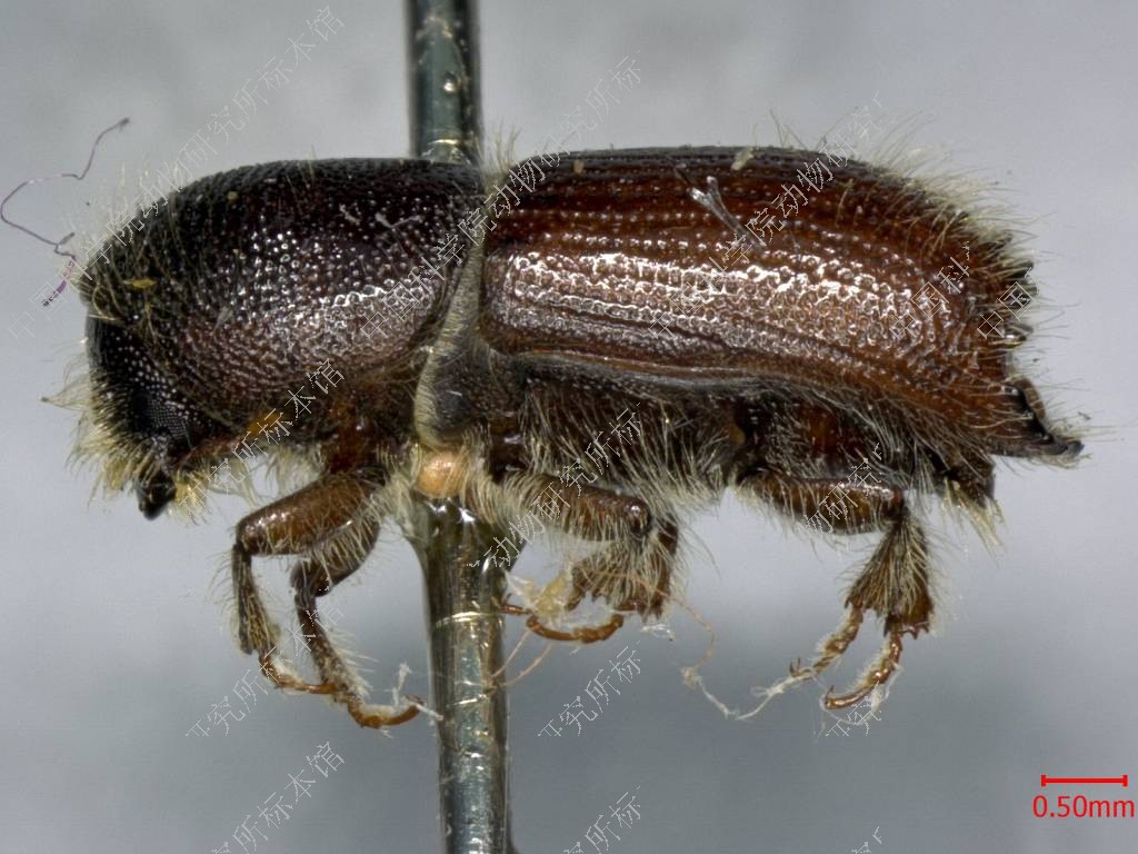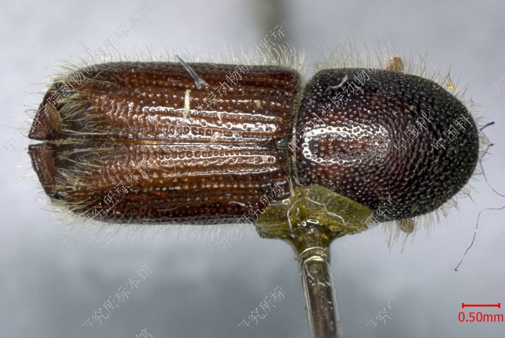 描述体长 4.9-6.4毫米,长为宽的2.7倍;深褐色至近黑色。额和前胸背板同I. emarginatus。鞘翅同I. emarginatus相似,但在沟间部有细小成列的刻点直至基部。有4对齿,第4齿较小。雌虫与雄虫相似,但口上片上的中瘤较小;第3齿突较小,顶端分岔,有时看起来像两个分离的小齿。与近缘种I. emarginatus的区别在于:此种鞘翅有沟间刻点,鞘翅斜面上有第4对齿。