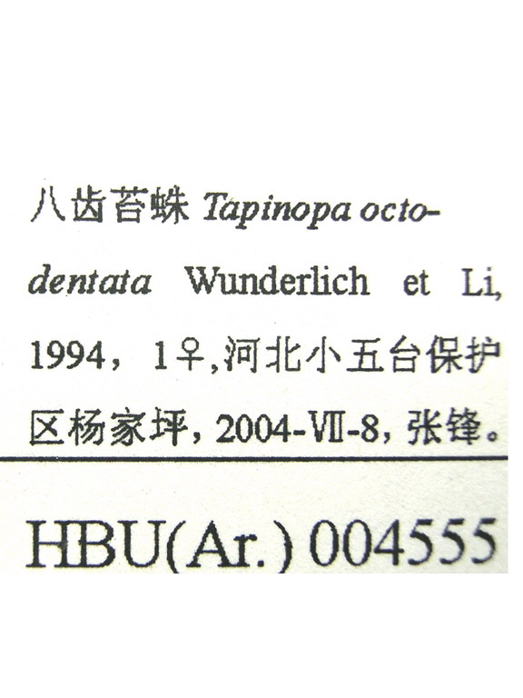维基百科 Tapinopa[edit] Tapinopa Westring, 1851 Tapinopa bilineata Banks, 1893 — USA Tapinopa disjugata Simon, 1884 — Palearctic Tapinopa gerede Saaristo, 1997 — Turkey Tapinopa guttata Komatsu, 1937 — Russia, China, Japan Tapinopa hentzi Gertsch, 1951 — USA Tapinopa longidens (Wider, 1834) — Palearctic Tapinopa vara Locket, 1982 — Malaysia
