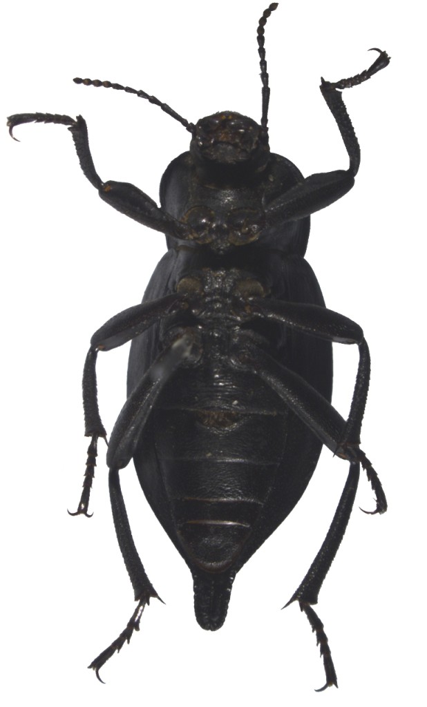 描述体大型,长卵形,亮黑色。
