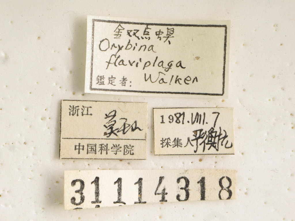翅展34-38毫米,桃红色,雄蛾前翅稍带褐色,内域桔红,前翅从中室到前缘有一个大形带硃红边缘的金黄色斑,斑纹外侧散布褐色点,并有一条深色横斜线,后翅淡桔红色,有一条深色的横线,雌蛾桃红色但缺桔红,前翅横线更加倾斜。