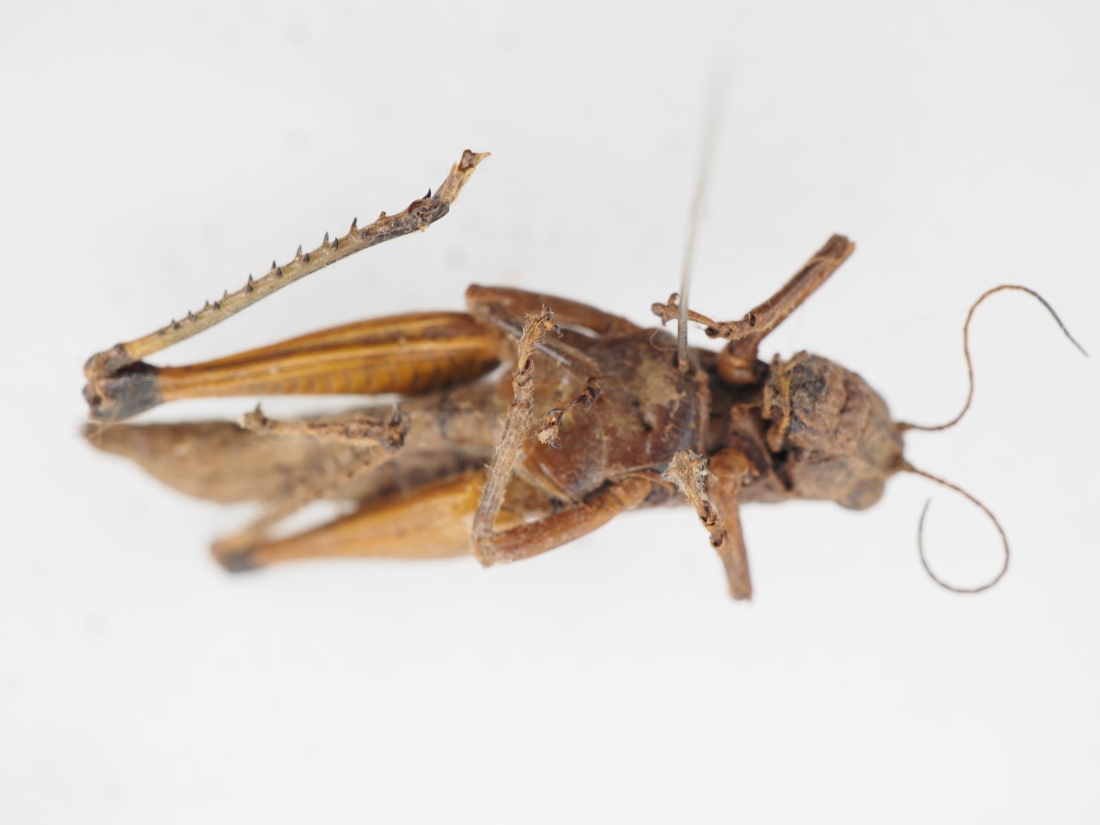 体长:雄25~29毫米;雌30~37.5毫米。前翅长:雄9.4~10毫米;雌10~12.5毫米。后足股节长:雄14~14.5毫米;雌16~19毫米。