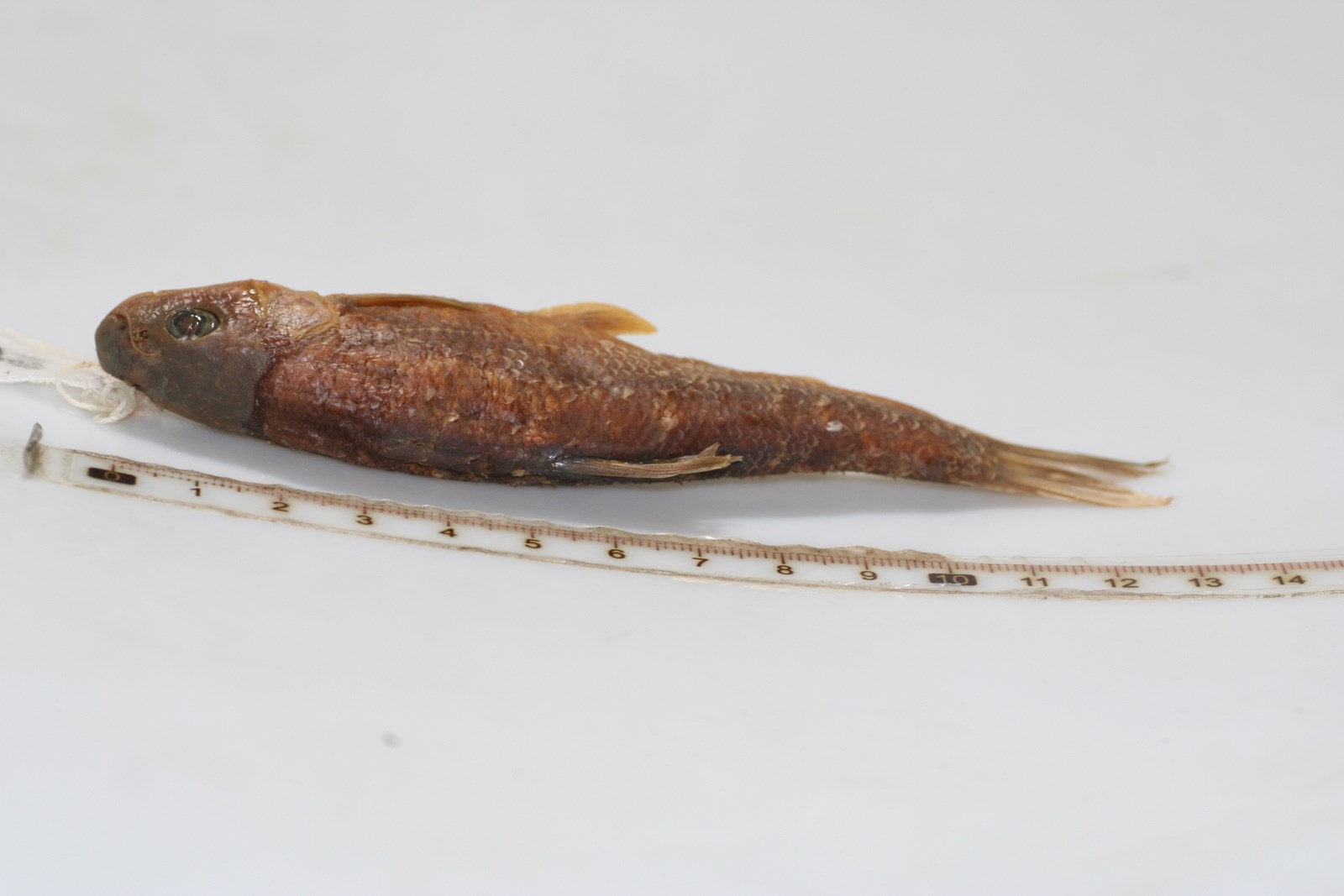 描述大鳞金线鲃体侧扁,较粗壮;头的背面平直。头后背部稍隆起,背腹缘稍呈弧形,弧度相当。吻圆钝,吻皮稍突出·盖了上唇基部。背鳍iii-7;臀鳍iii-5;胸鳍i13-14;腹鳍ii8-9。侧线鳞54-58.侧线鳞上的第-行体鳞60-63。下咽齿3行.1·3·4-4·3·1或2·3·4-4·3·2。第一鳃弓外鳃耙6-8。脊椎骨数4+36-37。体长为体高的3.5-4.0倍.为头长的3.5-3.8倍,为尾柄长的4.2-4.6倍,为尾柄高7.5--8.6倍。头长为吻长的3.O--3.4倍,为眼径的4.2-4.9倍,为眼间距的2.7-3.2倍,为口角须的2.2-2.9倍。体高为体宽的1.6-2.0倍。体侧扁,较粗壮;头的背面平直。头后背部稍隆起,背腹缘稍呈弧形,弧度相当。吻圆钝,吻皮稍突出.盖了上唇基部。口端位,上下领等长。唇较肥厚。上下唇在口角处相连,唇后沟向前伸达(亥页)部,左右不相连。鼻孔在眼的前上角.至眼前缘较吻端稍近。眼中等大,在头侧的前上方,眼上绦略低于头背部轮廓线。须2对,口角须稍长于吻须,后伸接近前鳃盖骨的后缘。鳃盖膜在前眶骨后缘稍前的下方连于峡部;鳃孔上角几与地方还是我眼上缘水平线乎齐。鳞片较小,略呈梨形,覆瓦状排列,被覆全身,背鳍前方及胸腹部鳞片变小。侧线鳞稍大于体鳞;侧线完全,自鳃孔k角和缓下弯后平直伸入尾鳍基中央。背鳍和臀鳍基无鳞鞘,腹鳍基有腋鳞,边缘游离。背鳍外绦平截,末根不分枝鳍条基部稍硬,后半部柔软分节,后缘光滑;其起点约与腹鳍起点相对,距吻端较尾鳍基为近。胸鳍后伸不达腹鳍起点。腹鳍后伸不达肛门。臀鳍紧接肛门之后,其起点距腹鳍起点较尾鳍基为近。尾鳍叉形。鳃耙短而圆钝,排列稀疏。下咽齿顶端尖而稍钩曲。鳔2室.后室约为前室的2倍长。浸泡标本体背部为青黑色黄色。