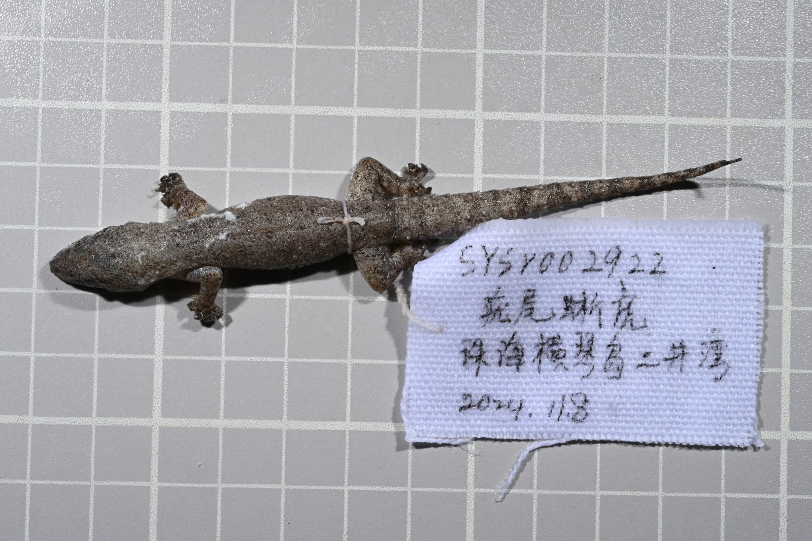 鉴定特征 头体长44~60毫米,小于尾长。体背粒鳞间的疣鳞较少,平滑或微棱。2对颏片,大小几乎相等。尾鳞分节排列,每节后缘具6个大而尖的疣鳞。雄性的2列肛股窝在肛前相遇。繁殖盛期在5~7月。分布于云南、台湾、广东、海南。