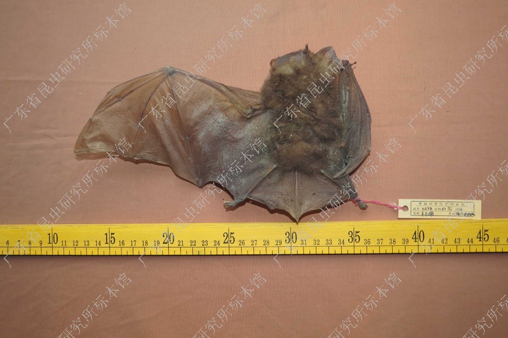 描述头体长75~95;尾长36~61;后足长16~18;耳长28~44;前臂长58~81;颅全长28~33。体型很大;中国的菊头蝠中最大的一种;胫长34~36mm;颧突宽14~16mm;复毛细长柔软而稍卷曲;翼膜不太延长;第三指第二指节之长不及第一指节的1.5倍。第三、四、五掌骨依次略长;马蹄叶前部明显扩张,盖住了吻部,两侧无小附叶;鼻孔的内外缘突起,并衍生成鼻间叶;鞍状叶基部向两侧明显扩张成翼状,故整个鞍状叶呈三叶形;连接叶十分低圆,从鞍状叶后面顶端最下方生出;顶叶窄长,呈舌状,顶端圆形;毛被棕色或烟灰色;毛尖有浅色环,因此有点灰色;耳及翼膜均有深色色素,颧突宽大于乳突宽;矢状脊发达;腭桥长超过上齿列长之1/3;相对小;鼻后窝深;眶间区甚窄;下颌冠突高;牙齿均小;上下颌小的前臼齿全部位于齿列内。