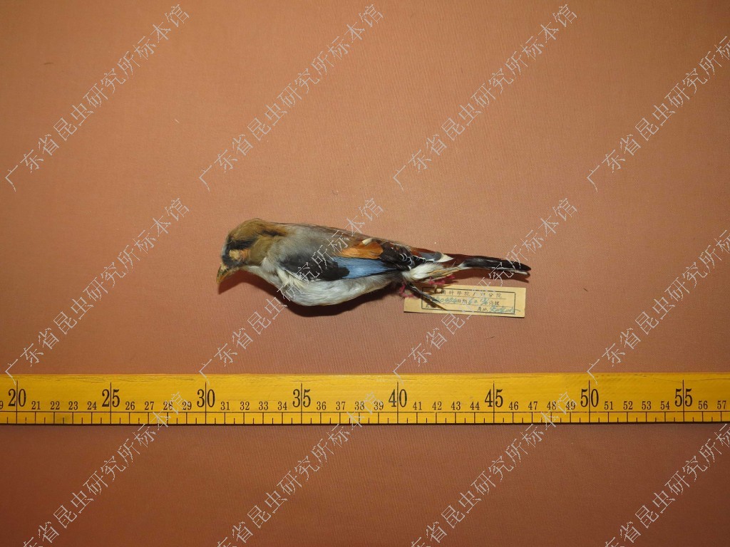 在全世界共分化为10个亚种。体长16-18厘米。嘴宽阔、天蓝色,基部橙色。鼻孔圆形具宽阔的黑色眉纹。上背烟灰色,下背至尾上覆羽栗色,两翅的翼缘白色,翼角羽缘缀浅灰蓝色,覆羽和羽端均为亮黑色,翅膀表面具有显著的亮蓝色和白色翼镜。尾羽黑色,中央两对纯黑,第三对多少沾一些白色,其余尾羽均具宽阔的白色端斑,呈凸尾型。跗蹠和趾蓝绿色。属热带森林鸟类,栖息于海拔90~1400米热带、亚热带地区的各种类型的树林中,主要以昆虫为食,也吃植物果实。