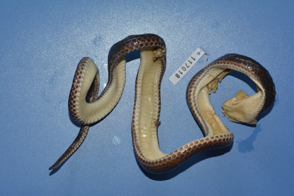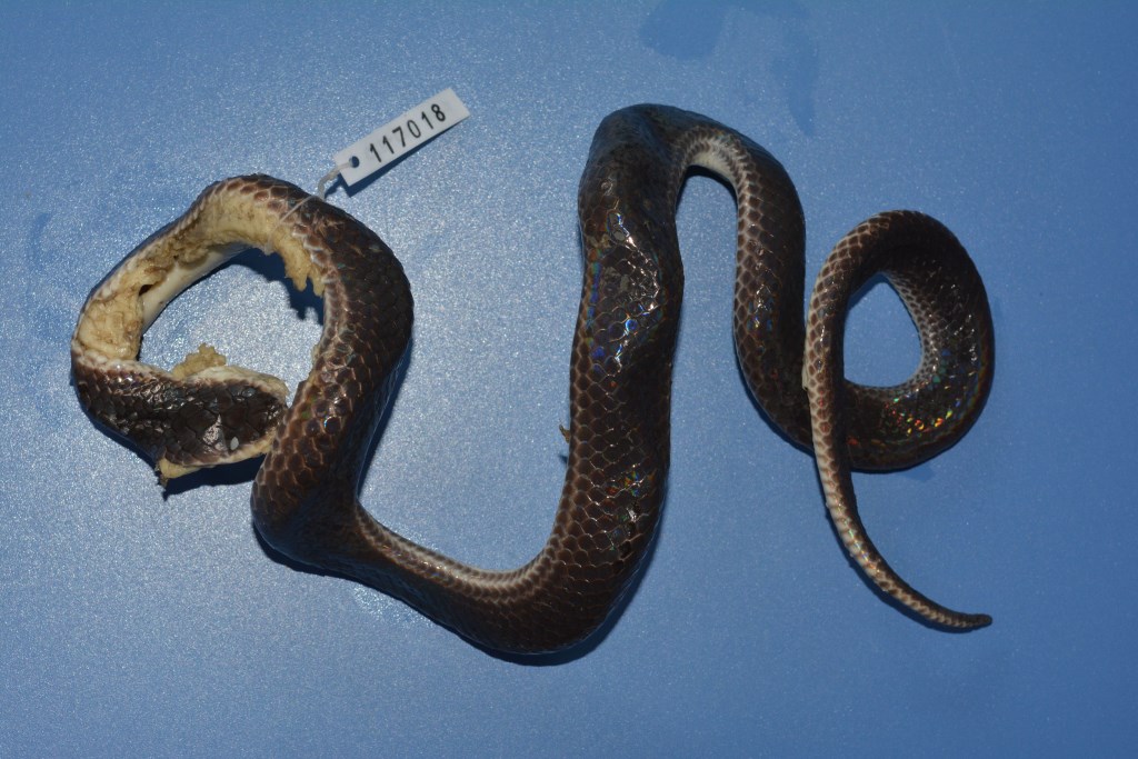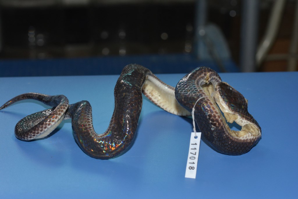 眶后鳞2,上唇鳞8, 3-2-3式,腹鳞164-196,尾下鳞22-31对,上颌齿35-45枚.头和眼较小,鳞片富于光泽,在阳光照射下,可以闪耀出电蓝,宝石绿、血红、紫红及铜色光泽,闪鳞蛇的名称源于此。尾短,尾长仅为体全长的1/12左右。腹鳞较窄。其宽度不到相邻背鳞的3倍。