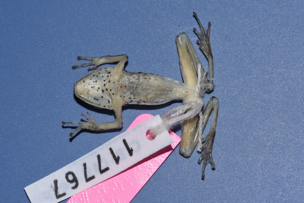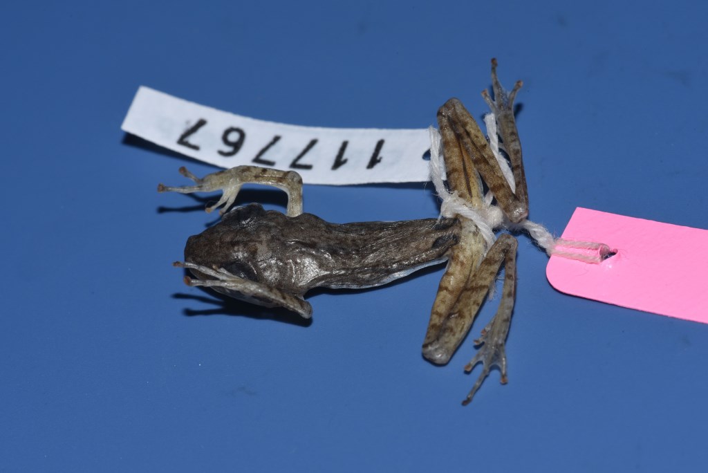 维基百科 斑腿泛树蛙(学名:Polypedates megacephalus),又称为斑腿树蛙、大头树蛙、大头泛树蛙及白颔树蛙等。模式标本来自香港。 特征[编辑] 中型蛙种,雄蛙约50毫米,体型略大的雌蛙可达70毫米。背腹扁平,呈浅褐色,体色可稍为改变以配合周围环境,皮肤光滑,有零星小疣粒,背部或有交叉形花纹。大眼睛,鼓膜明显,后肢有半蹼,趾端吸盘发达。 被捕捉或受惊时会即时排尿。
