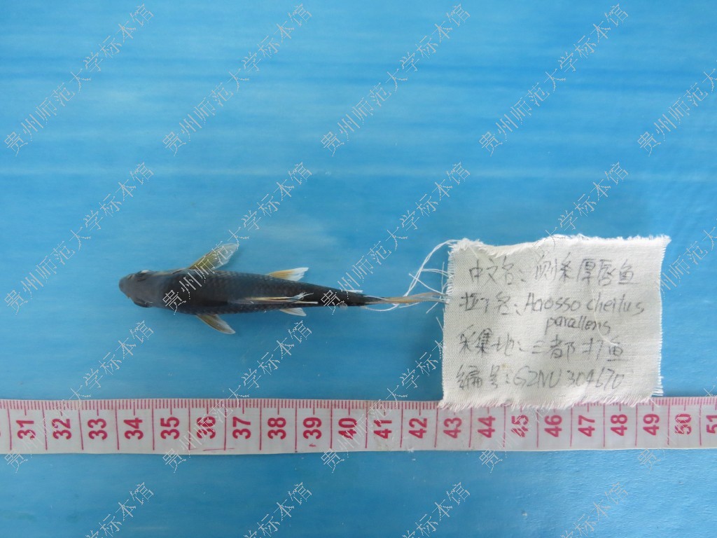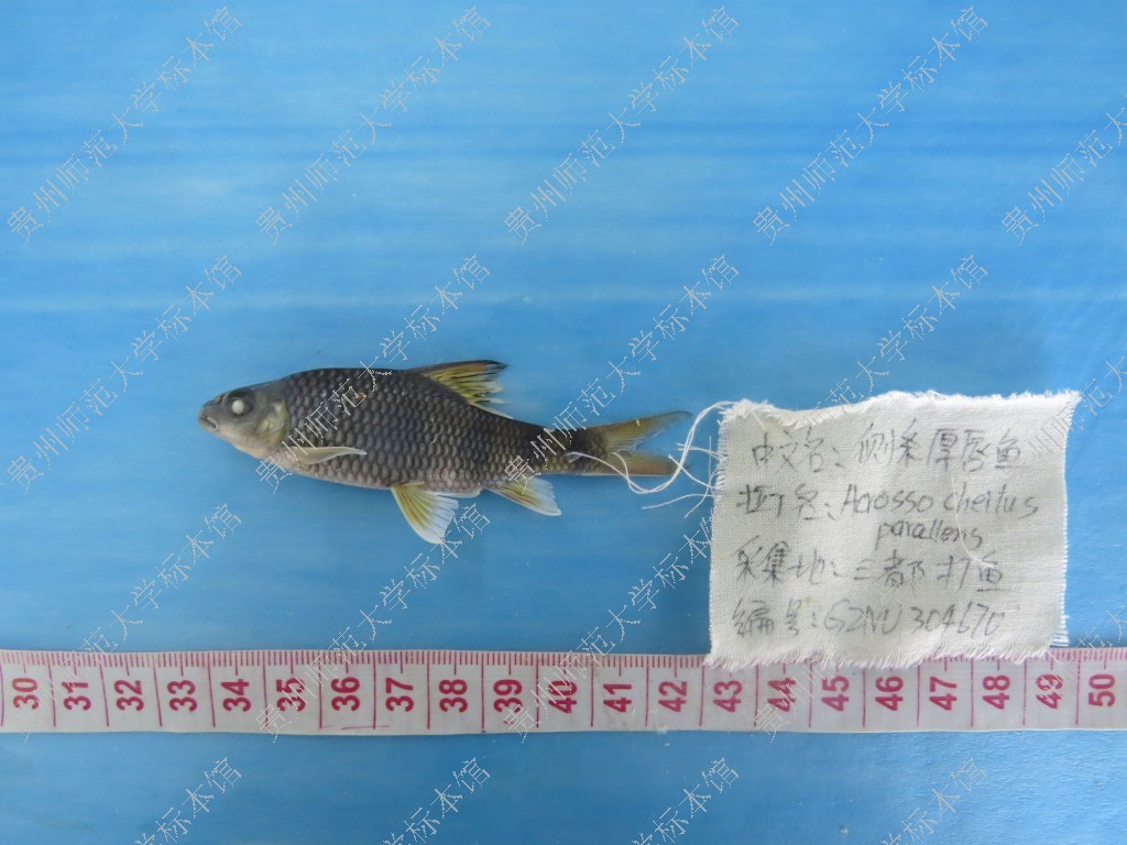 背鳍条3,8;胸鳍条1,13~16;腹鳍条1,8;臀鳍条3,5。鳃耙8~9。下咽齿3行,2.3.5一5.3.2.。侧线鳞36[5.5/(3.5~V)]37;背鳍前鳞11~13;围尾柄鳞16。   标准长为体高的3.3~3.6(x±s=3.4±0.10)倍,为头长的3.6~3.9(3.8±0.14)倍,为尾柄长的6.2~7.3(6.8±0.42)倍,为尾柄高的7.4~8.5(8.0±0.37)倍。头长为吻长的2.5~2.7(2.6±0.10)倍,为眼径的4.4~4.6(4.5±0.06)倍,为眼间距的2.5~2.9(2.7±0.15)倍。   体狭长,侧扁,背前部弧形,腹部国而稍平直.头中等大,侧扁,前端略尖、吻稍向前突出,吻长小于眼后头长,吻皮游离,止于上唇基部.侧面在前眶骨前缘有一裂纹.口小,下位,口裂马蹄形,口角间距约等于眼径.唇肉质,下唇较为发达,上下唇在口角处相连;下唇分左右两侧瓣,在下颌之后,中间仅有一裂缝.唇后沟前端不相通,但相距甚狭,为眼径的1/5.下颌前缘圆形,无角质.须2对,吻须短,不及颌须的1/2,后者约与眼径相等或更长.眼中等大,前侧上位,眼间较宽,隆起,其间距约为眼径的1.6~1.7倍.鳃膜在前鳃盖骨后缘之下连于鳃峡.鳃耙短,排列稀疏.下咽齿稍侧扁,顶端尖而成钩状,主行腹面第二和第三枚齿较大,第一枚齿细小.   背鳍外缘截形或微内凹,末根不分枝鳍条细长,顶端柔软,后缘具极细的锯齿,其长比头长为短,起点距尾鳍基较距吻端为近.胸鳍短于头长,稍长于腹鳍,后仰不达腹鳍,其间距约有2~3个鳞片.腹鳍起点约在背鳍第一至第二分枝鳍条的下方,后伸不达或将达臀鳍起点.臀鳍起点距腹鳍起点约等于距尾鳍基或稍近于前者,后伸不达或将达尾鳍基,外缘微凸.尾鳍分叉,上下叶约等长,最长鳍条约为最短鳍条的2倍多.肛门紧接臀鳍起点前方.   鳞中等大,腹鳍基部有一狭长腋鳞,侧线较平直,向后伸入尾柄的中轴.鳔2室,前室小,卵圆形,后室大,长圆形,约为前室的2倍左右.腹膜灰黑色.雄鱼吻端有2行、前眶骨外表有2~3行较大珠星.   体背侧具6条黑色垂直条纹,每条约占2~3个鳞片左右,有时在背部增加1~2条较短垂直条纹;沿侧线有一黑色纵带,雄性纵带显著,垂直条短,限于侧线上方,雌性的垂直条显著,可达甚至超过侧线,但纵带不显著.背鳍条灰黑色,鳍膜色浅,其他鳍皆浅灰色。