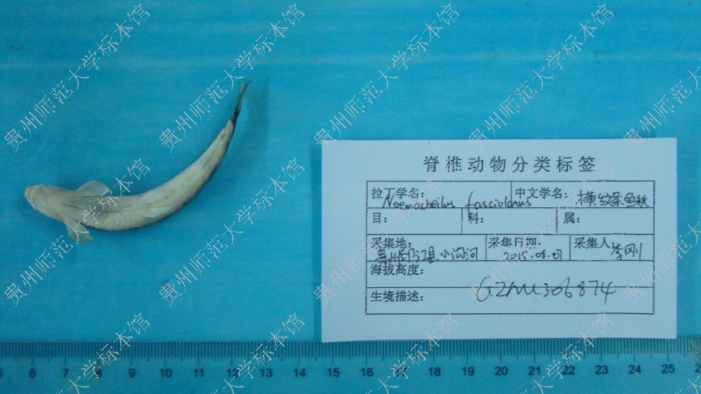 描述背鳍3-8;臀鳍2-5;胸鳍i-8—10;腹鳍i-7. 脊椎骨4+34-35。体长为体高的5.6~7.3倍,为头长的4.3-5.0倍,为尾柄长的6.0一7.3倍,为尾柄高的7.1~8.6倍,头长为吻长的2.1~2.5倍,为眼径的5.7一7.8倍,为眼间距的3.1-3.8倍。尾柄长为尾柄高的1.1一1.3倍。体前部略呈圆筒形,在背鳍下方渐侧扁。头部平扁。吻部三角形。下颌中央有“V”形缺刻。体侧有8-19条黑色的横条纹,尾鳍浅红色,其余各鳍黄绿色。液浸标本尾鳍基有1根黑色的横条纹。为小型底层鱼类,多栖息于山涧石底或小溪,摄食水生昆虫、底栖无脊椎动物或石底的苔鲜等。