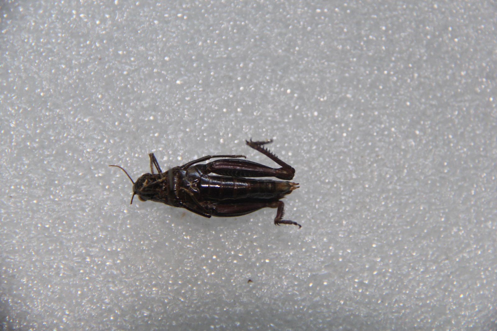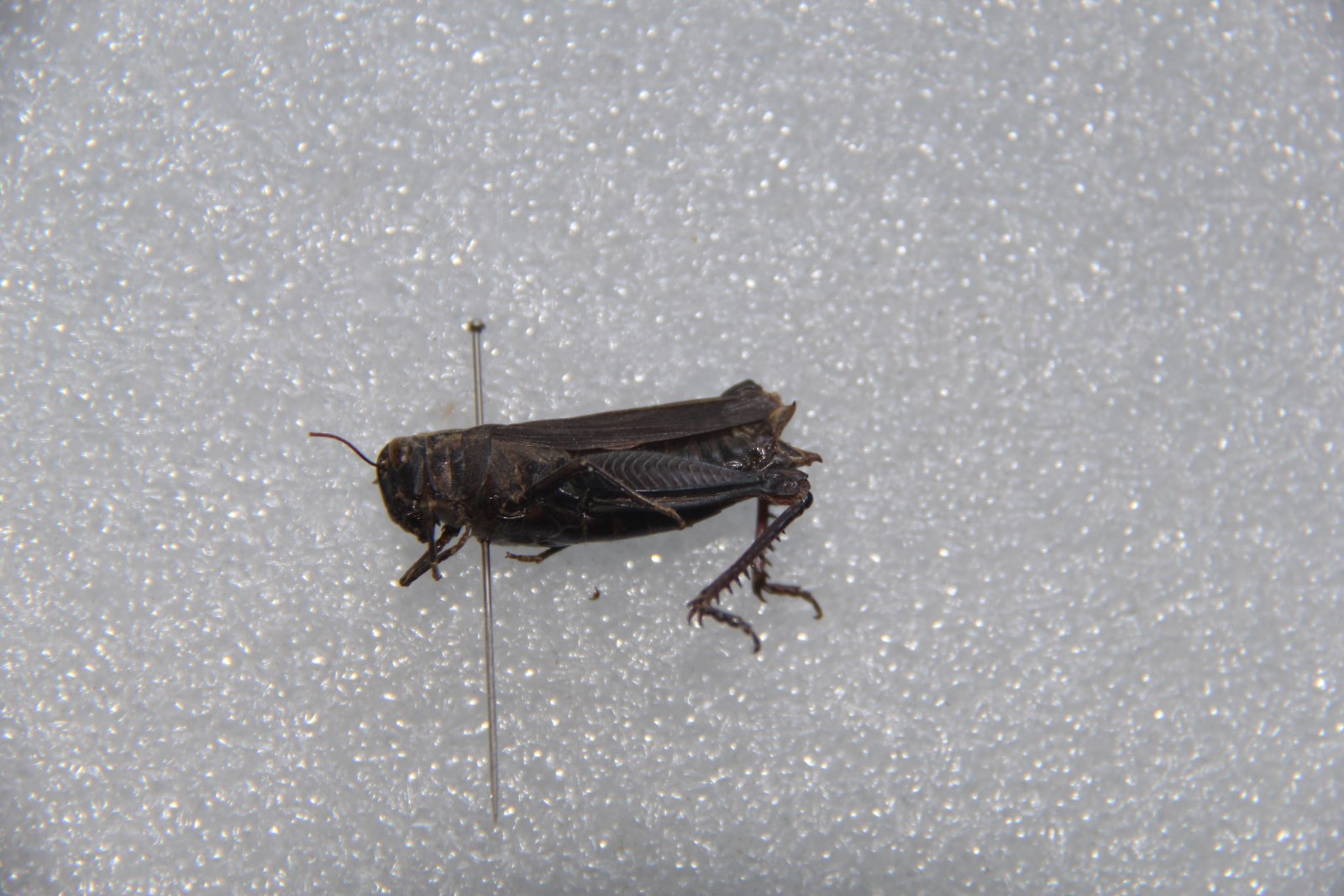 体长11.7-16.9 mm。体暗褐色;头胸部具较密的暗色小斑点;触角基部黄褐色;前翅散布黑色斑点;后翅基部黄色,余部烟色,无暗色横纹;后足腿节上侧具3个黑色横纹,内侧及底侧黑色,近顶端处具2个淡色纹;后足胫节近基部和近中部各具1个淡色纹。头短,复眼之间具2个粒状突起;颜面侧观略向后倾斜;复眼纵径为眼下沟长的1.5倍;触角超过前胸背板后缘。前胸背板前狭后宽,中隆线明显隆起,被中、后横沟深切断;侧隆线在前缘和沟后区明显可见。前、后翅发达,超过后足腿节中部。后足腿节上侧中隆线无细齿;后足胫节缺外端刺,上侧外缘具刺8个,内缘具刺9个。雌性体较雄性大;颜面垂直;触角较短;复眼较小;产卵瓣粗短,上产卵瓣上外缘无齿。