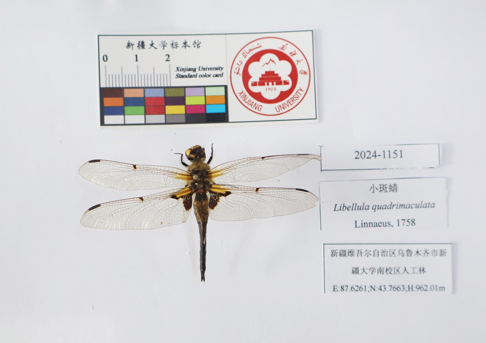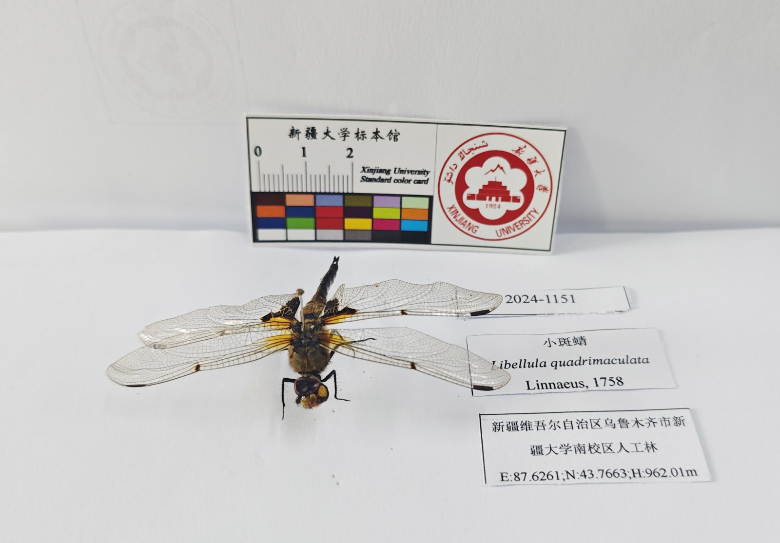 描述体中型,褐色。雄性下唇中叶黑色,侧叶黄色,侧叶的内缘和基片黑色。上顎基部黄色。上唇黄色,具黑色边缘,基部中央具1纵黑斑。前、后唇基及额均为黄色。面部只头顶具黑色毛,余均被黄毛;头顶具宽的黑条纹;横贯单眼区域,条纹两端沿额两侧向前伸展 ,达到额前缘,头顶大部分成1较高的突起,突起的前面及侧面黑色,后面暗黄色,顶端黄色。后头褐色,具白色细毛。两眼在头顶的接触缝很短。前胸黑色,前叶上缘黄色,背板中央稍2裂,具1对“逗点”形小黄斑,逗点尖端分向左右。合胸黄褐色,密被淡黄色长毛;背面无斑纹;侧面具黑色条纹,其中第1
