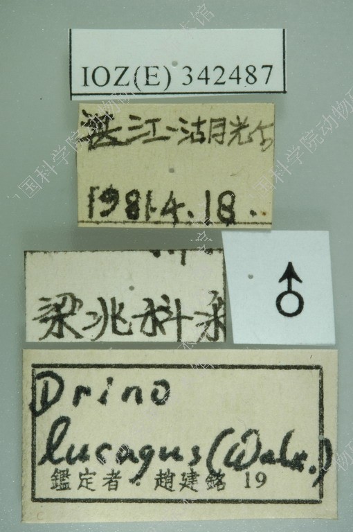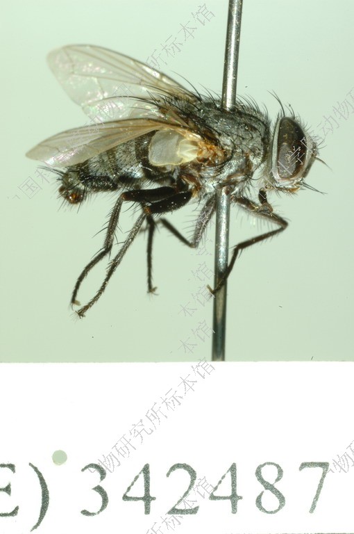 ♂ 单眼鬃发达,外侧额鬃缺如,外顶鬃退化与眼后鬃无明显区别,额的宽度窄于复眼宽,间额两侧缘平行,其宽度大于侧额中部的宽度;额鬃有3根下降至侧颜,最前方一根达触角第2节末端水平,侧额毛下降至侧颜超过最前1根额鬃的水平,侧颜较窄,其宽度小于触角第3节;颜堤鬃仅几根分布于颜堤基部;触角第2节较长,第3节为第2节长的2-2.5倍,第3节基部内侧黄色,触角芒基部3/5加粗;下颚鬃棒状;后头上方在眼后鬃后方无黑色小鬃。中鬃3+3,背中鬃3+4,翅内鬃1+3,腹侧片鬃2+2,肩鬃4根其中3根基鬃排成一直线;小盾片具1对心鬃,小盾侧鬃每侧2根,两小盾亚端之间的距离约等于亚端鬃至同侧基鬃的距离;翅r4+5脉节结仅具1根小鬃,中脉心角为钝圆,心角至翅缘的距离明显小于心角至中肘横脉的距离;前足爪短,不长于第5分跗节,前胫具2根后鬃;中胫具前背鬃、腹鬃各1根, 后背鬃2根;后胫具梳状前背鬃1行, 中间具1根发达的鬃。腹部第3背板具1对短的中缘鬃,其长度不超过第4背板长的1/2;第4背板具1排缘鬃,腹面两侧具大而明显的密毛斑,占据两侧腹面的全部;第5背板具不规则的中心鬃。肛尾叶钳状,末端尖,背中部具淡色密毛;侧尾叶窄而直,末端无钝刻。