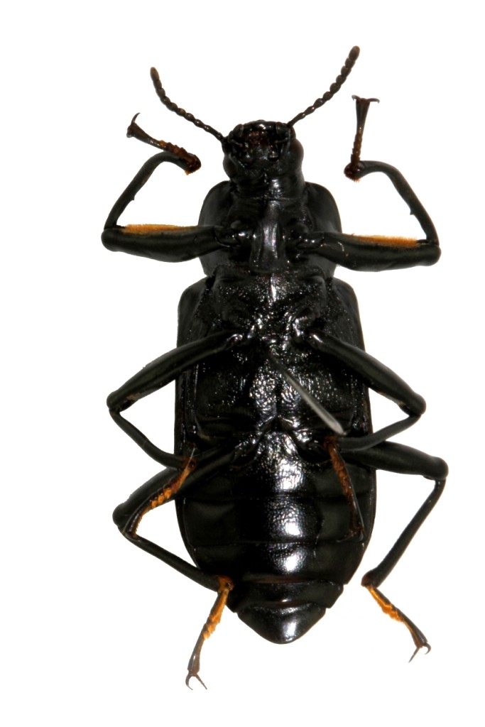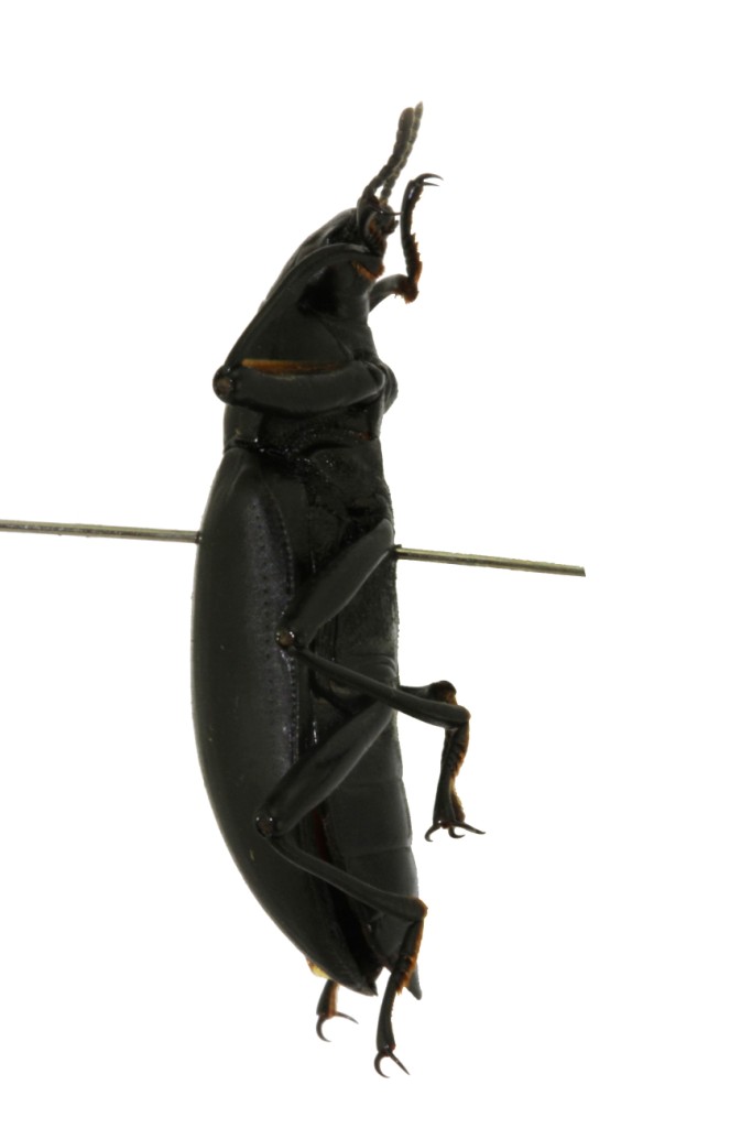 体粗壮,黑色,昏暗。 前胸背板长方形,宽为长的1.45 倍;前缘直, 两侧具饰边;侧缘中后部最宽,向前强烈、向后轻微地收缩,饰边完整;基部二弯状,中央宽弯,具明显饰边;前角钝角形,后角直角形 鞘翅表面昏暗的鲨皮状,有微粒,翅坡和侧区完全可见;刻点行间扁平,外侧细刻点不呈纵行痕迹。 前足胫节强弯,内侧基部有2钝角或仅基1/3有1钝角。 体长:22.0~30.0 mm。