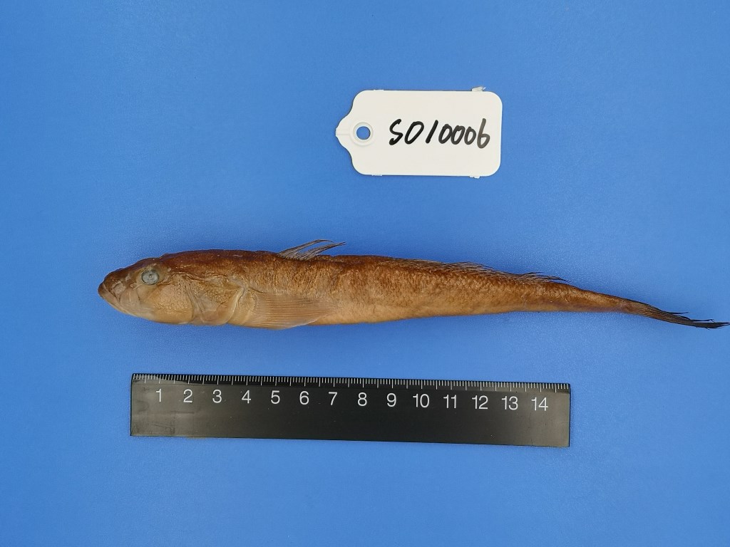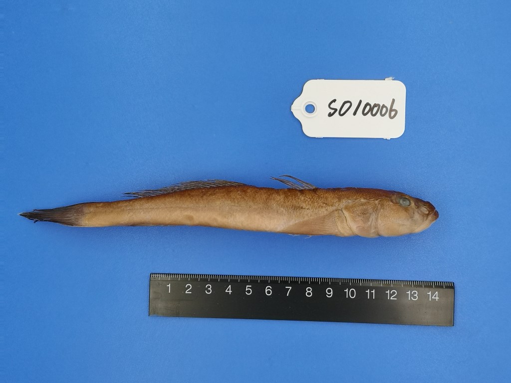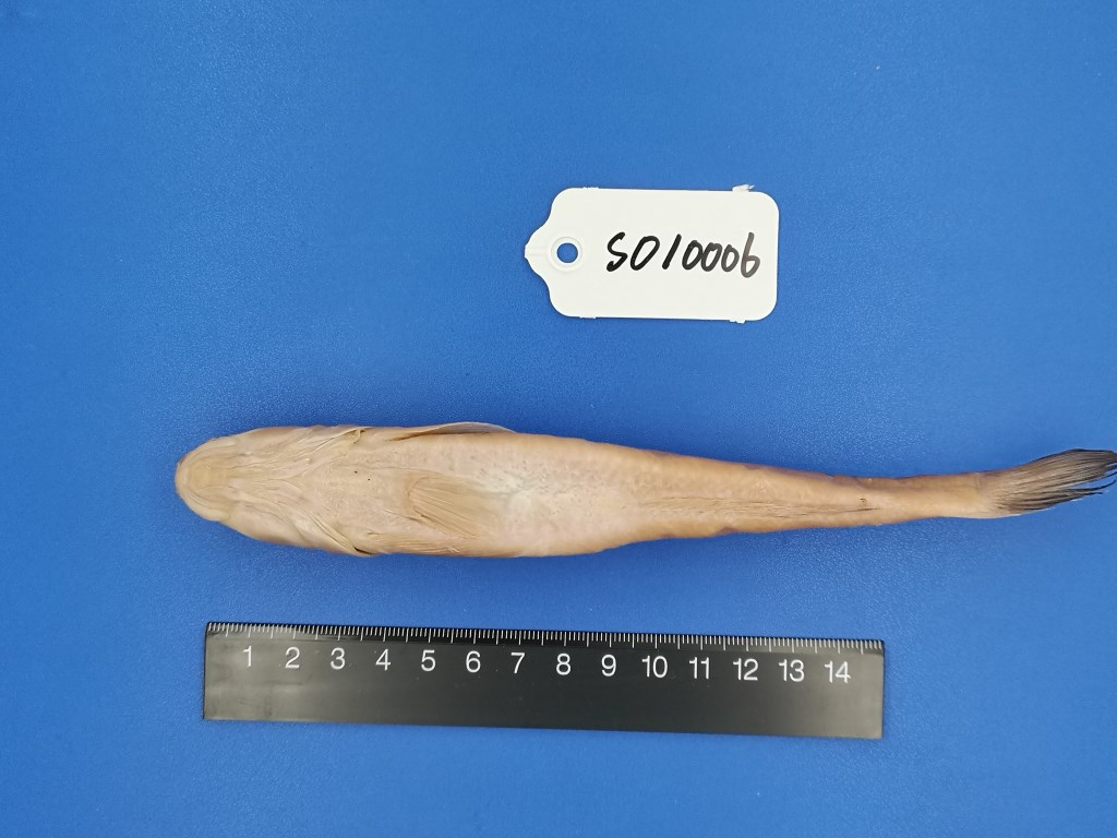 体延长,前部呈圆柱状,后部侧扁且细。头宽而扁平,口端位,上颌略长于下颌,上下颌均具有锐利的牙齿。吻长,前端圆钝。背鳍2个,分离,第1背鳍起点至吻端的距离等于或稍大于至臀鳍起点的垂直距离。第2背鳍很长,起点在肛门的垂直上方或稍前。胸鳍很长,末端超过腹鳍末端。腹鳍愈合,呈圆盘状。尾鳍尖圆。体被中大圆鳞,颊部,鳃盖等均被小鳞。无侧线。背部黄褐色,腹面白色,背鳍有数行黑色小点。胸鳍黄褐色。腹鳍、臀鳍呈浅金黄色。尾鳍黑色,外缘金黄色。