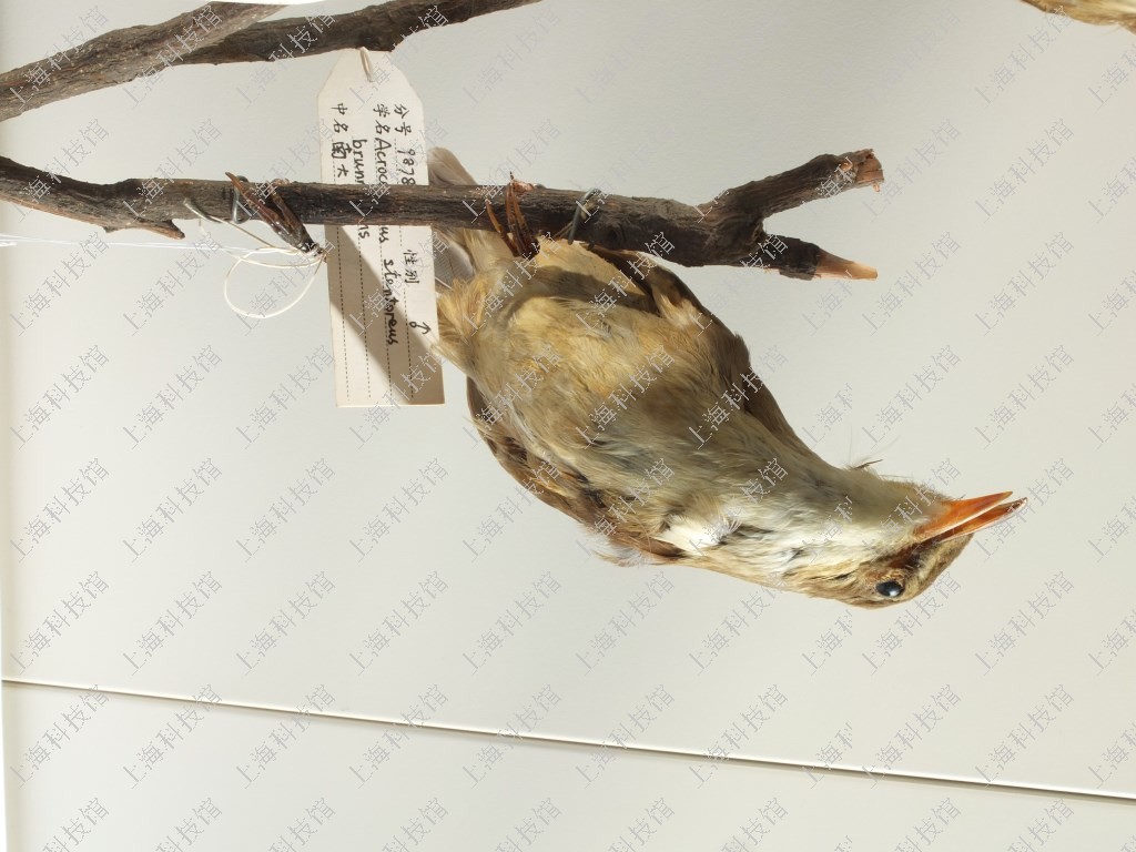 野外鉴别特征 小型鸟类,体长17-19cm。上体橄榄棕褐色,眉纹淡黄白色,飞羽和尾羽暗褐色,羽缘淡棕色。下体棕白色,喉、胸具纤细的暗色纵纹。尾下覆羽皮黄色。 东方大苇莺外形和本种非常相似,野外很难区别,但东方大苇莺第二枚初级飞羽较第五枚长,而本种第二枚初级飞羽较第五枚为短,在得到标本后可据此鉴别。 形态描述 雌雄羽色相似。上体橄榄棕褐色,尾下覆羽较淡呈橄榄棕色,眉纹棕白或皮黄白色,眼先黑褐色并经眼周延伸至眼后,形成不明显的黑褐色贯眼纹,头侧余部较头顶淡。两翅覆羽与背同色,飞羽暗褐色,羽缘淡棕色,第二枚初级飞羽较二枚为短,第三枚与第四枚初级飞羽等长。尾暗褐色。羽缘淡棕色,颏、喉白色或棕白色,胸棕白色,喉和胸具细的暗色纵纹,有时纵纹极不明显,腹浅棕白色或白色,腹侧和两胁淡棕褐色,肛周和尾下覆羽浅棕色或棕黄色。 虹膜橄榄褐色或沙褐色,上嘴褐色或灰褐色,下嘴棕白色,嘴缘蜡黄色,脚暗灰色。