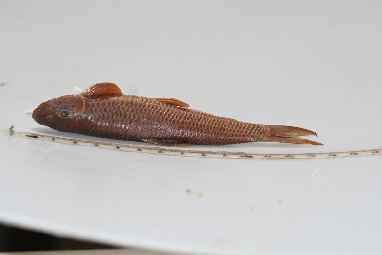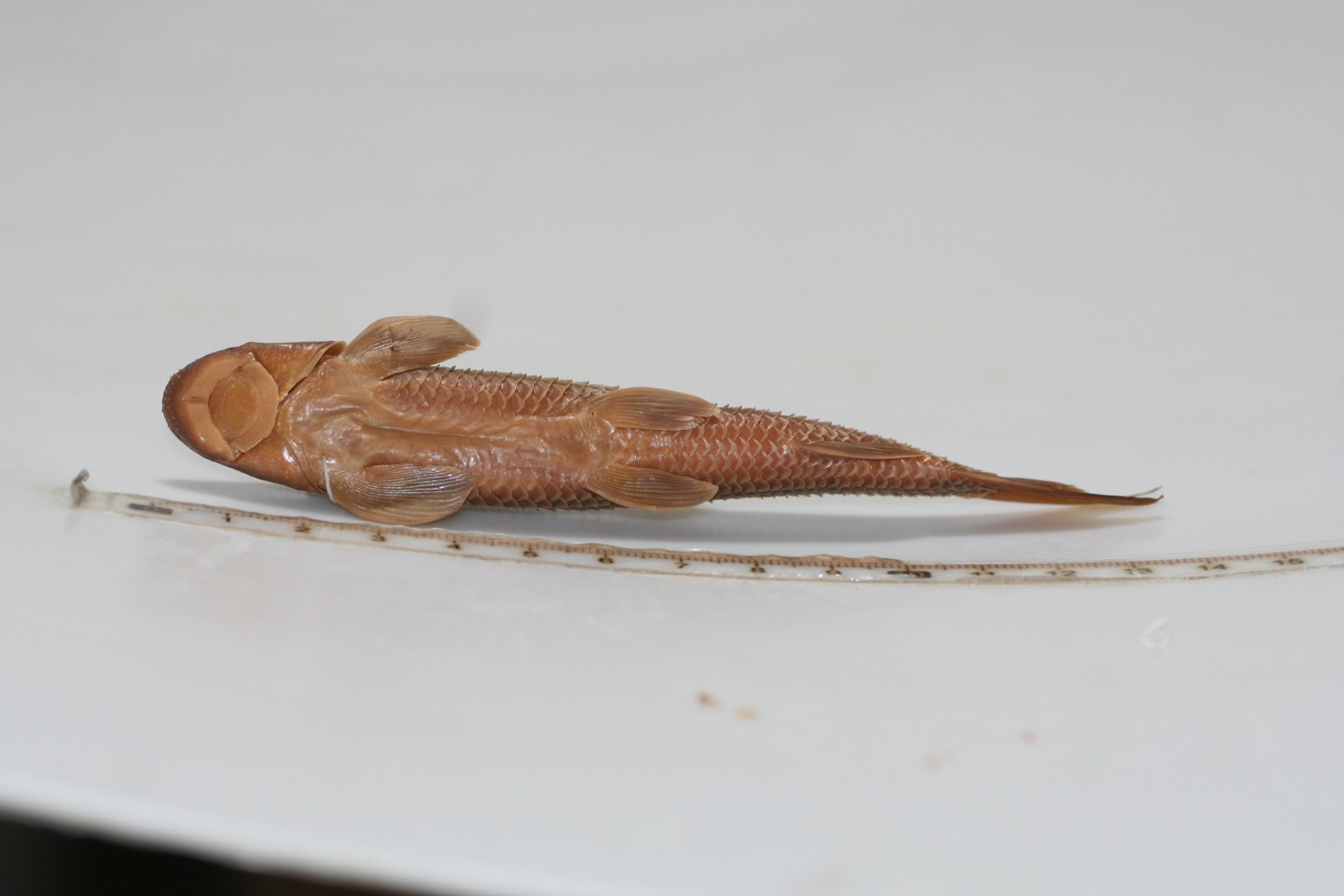 体长,稍呈圆筒形,尾部侧扁。下唇宽大,似椭圆形吸盘。鳞中等大,腹鳍前,后的鳞片显著变小且埋于皮下。腹鳍有一枚尖长的腋鳞。侧线平直,由鳃孔上角伸达尾柄中部。背鳍鳍点在腹鳍起点上前方。外缘凹,第一分枝鳍条最长。体浓黑褐色,腹部色较浅,各鳍灰黑色。