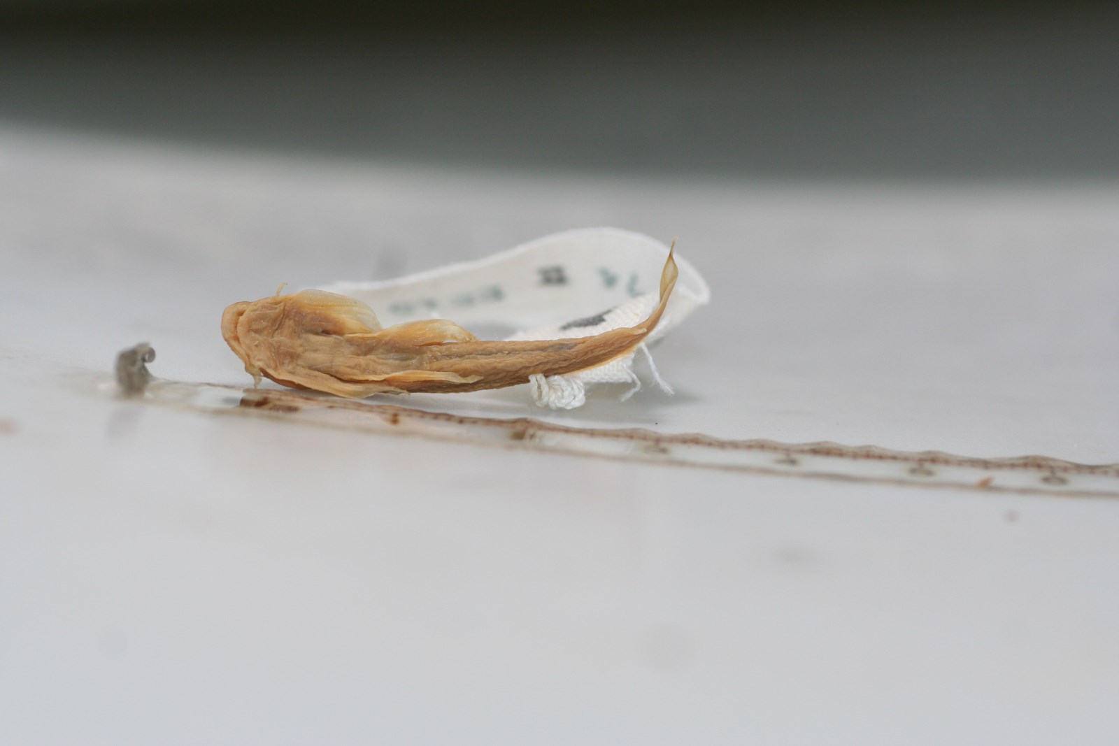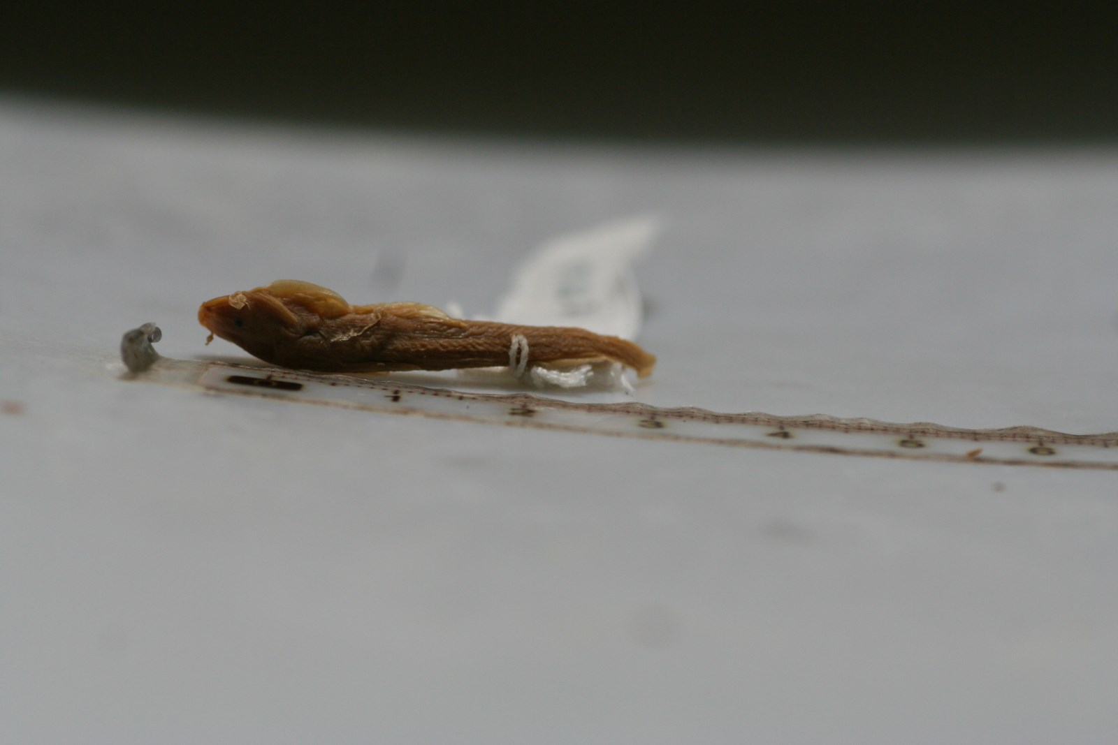 体延长,头扁平,体后躯侧扁。吻宽圆,眼小,上位,居头中部。须4对。鼻须1对,出处前后鼻孔间,末端超过眼后缘。上颌须1对,位于头侧,其基部宽阔薄膜状,前与吻皮和唇部相联,末端尖细超过胸鳍基部。外颏须1对位于头侧腹面,末端达胸鳍基部。内颏须1对,短小,位于头腹面中部。口宽,腹位,成弧形。上下颌具齿带,上颌齿原鮡型,两侧向后伸展。下唇没有唇后沟,下唇和鳃峡部相联而无界线。内颏须间有一小凹坑。鳃孔小,位于头侧。鳃孔下角相对于胸鳍第1分枝鳍条。胸鳍末端盖着腹鳍基部;背鳍起点位于胸鳍后半部上方,离吻端较臀鳍起点近;腹鳍与臀鳍起点间距几乎达身长之半,远长于胸、腹鳍起点间的距离。腹鳍末端至肛门距离大于腹鳍长。肛门紧靠臀鳍起点。脂鳍几乎与尾鳍相接。尾柄短,其高略短于长或者相等。尾鳍凹。侧线完全,平直。 体深褐色,腹部淡,体无明显斑点或条纹。各鳍游离部颜色淡。