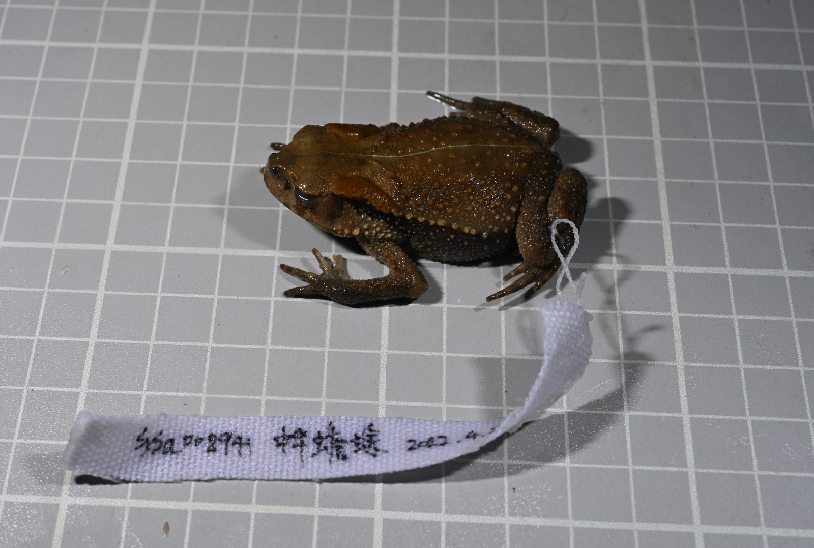 中华蟾蜍体长约100mm左右。头背光滑无疣粒,体背瘰粒多而密,腹面及体侧一般无土色斑纹。雄体通常体背以黑绿色、灰绿色或黑褐色为主,雌体色浅;体侧有深浅相同的花纹;腹面为乳黄色与黑色或棕色形成的花斑。穴居在泥土中,或栖于石下及草间;栖居草丛、石下或土洞中,黄昏爬出捕食。产卵季节因地而异,卵在管状胶质的卵带内交错排成四行。卵带缠绕在水草上,每只产卵2000-8000粒。
