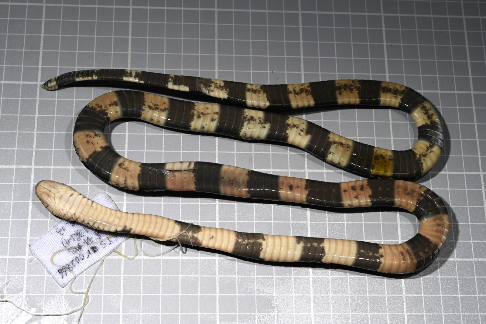 维基百科 金环蛇(学名:Bungarus fasciatus),俗称金甲带、金包铁、金脚带、花扇柄(客家话)、雨伞柄(潮州话)或佛蛇等,是环蛇属的一种,是毒性很强的蛇。一般来说,金环蛇和其他环蛇属的蛇一样,动作缓慢,不爱攻击人类,主要以小型脊椎动物为食。金环蛇的毒性较其近亲银环蛇弱,但仍然属剧毒蛇,而数量也较银环蛇多。