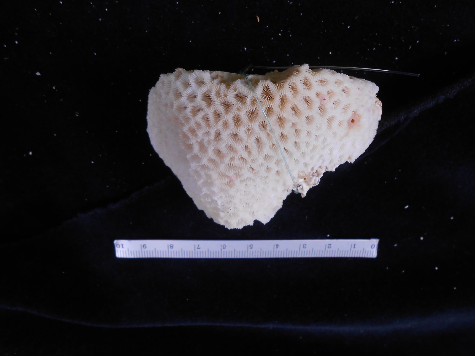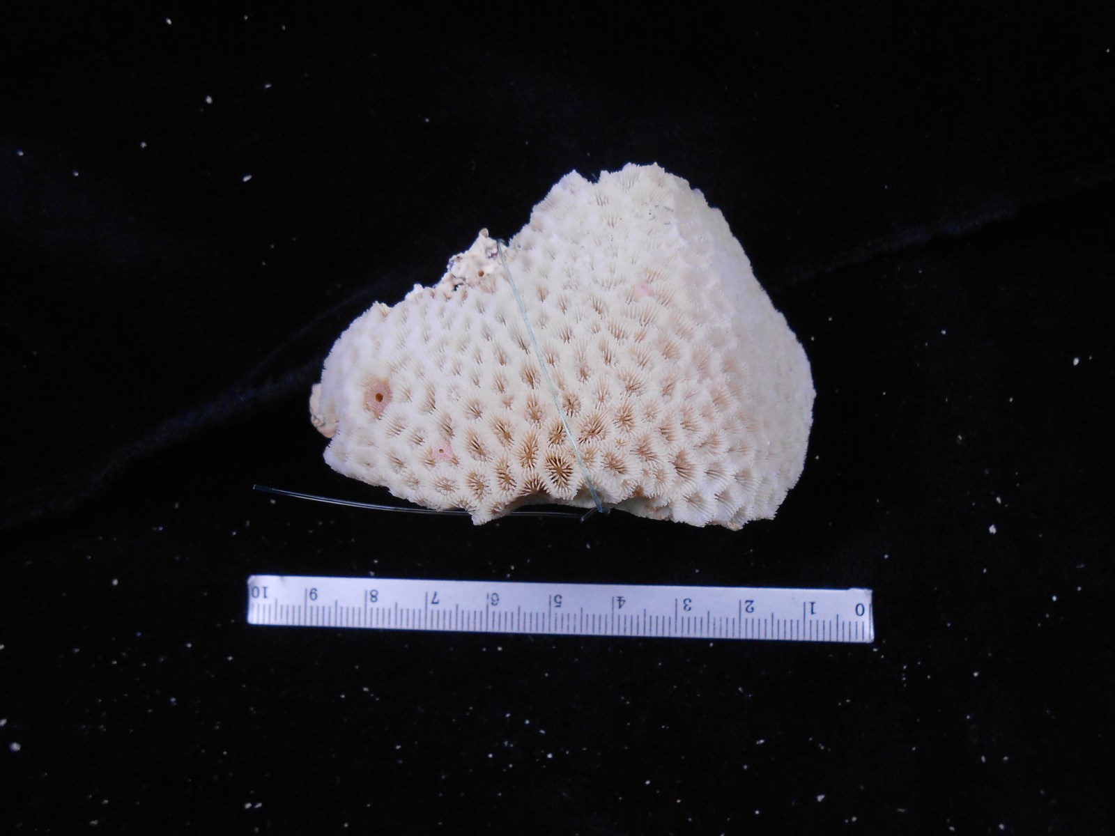 群体,皮壳状,稍凸起,或随附着基形状生长。珊瑚体为不等多边形,以五或六边形为主,长径小于5mm,珊瑚杯浅,杯间壁薄,合隔桁(synapticulae)清楚。隔片十六至四十八个,无孔。在珊瑚骼凸起或边缘部分隔片齿上刺花多,隔片两侧有小刺或颗粒。轴柱小,通常是一个扁圆形突起,少数由二 个或三个小尖刺组成。生活时为黄绿色。国外分布:阿鲁群岛,新加坡,澳大利亚,印度东南沿岸。国内分布:我国广东省沿岸。