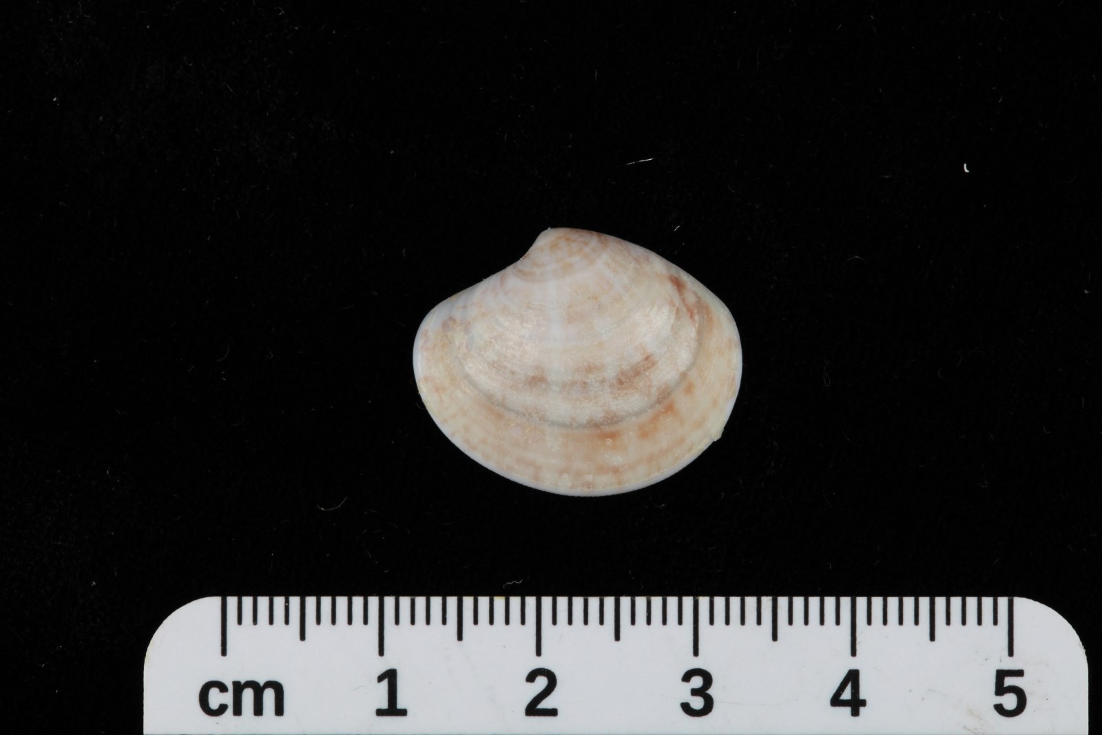 贝壳呈圆形,稍膨胀,壳高与壳长相等,两侧不等。壳高49.7mm,壳长50.2mm,壳宽24.mm。壳顶稍突出,位于背缘中央偏前,贝壳背后缘往下倾斜,前腹缘圆,壳表棕黄色,具有宽的淡棕色放射状色带和明显的同心生长轮脉。壳内面棕黄色,铰合部较宽,两壳各具发达的主齿3枝。