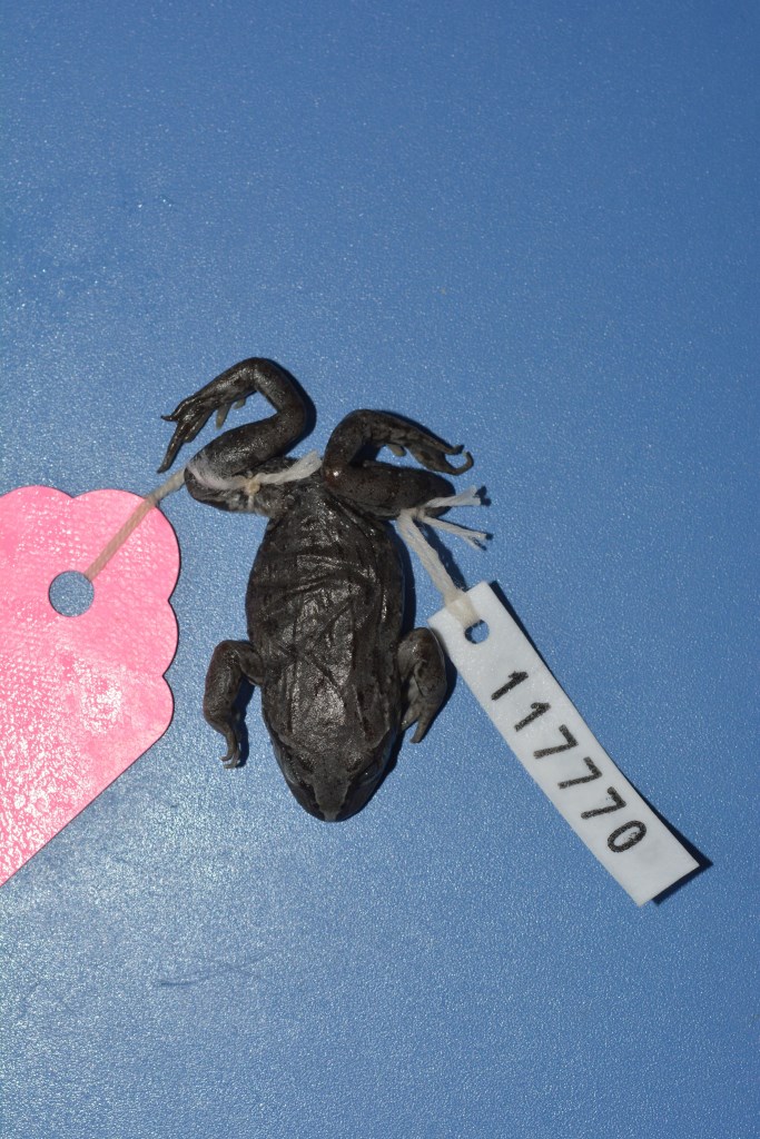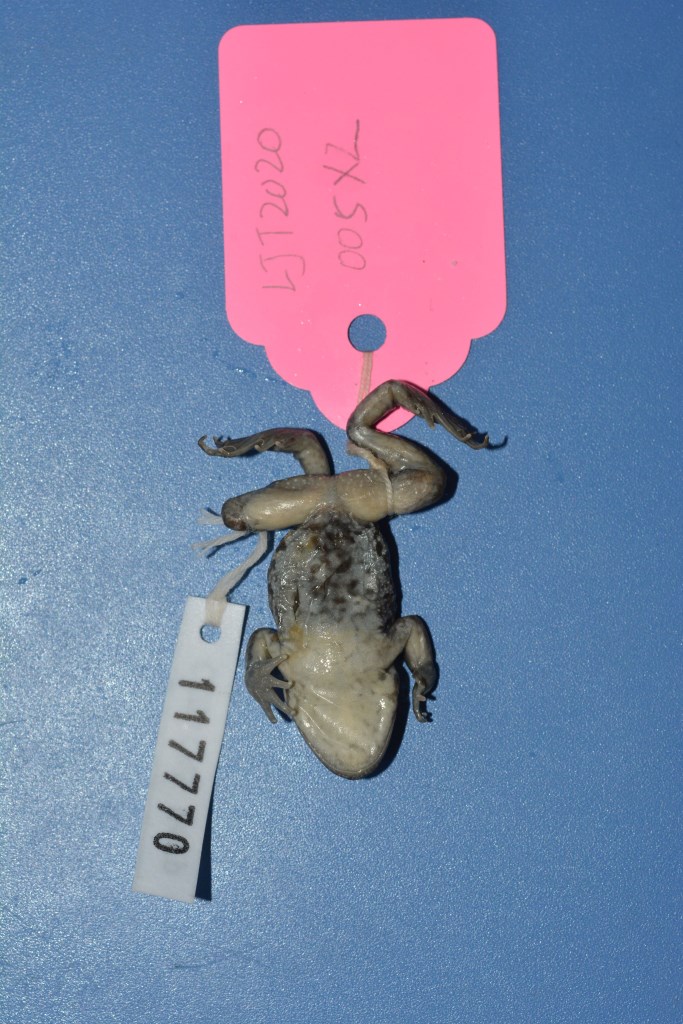 鉴定特征 本种外形与倭蛙Nanorana pleskei相近。本种无鼓膜和鼓环,无耳柱骨或退化呈短突;前喙骨细,骨化部分较多;体背有排列较为规则的长、短疣粒5-10行;背面深色斑纹不甚规则。蝌蚪口较大,第一行下唇齿略短于第二行。参考文献. 费梁,胡溆琴,叶昌媛,黄永昭等, 2009. 中国动物志 两栖纲 下卷 无尾目 蛙科. 北京:科学出版社.