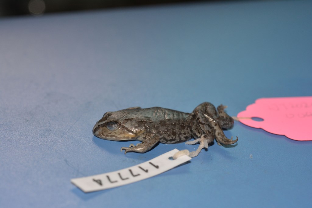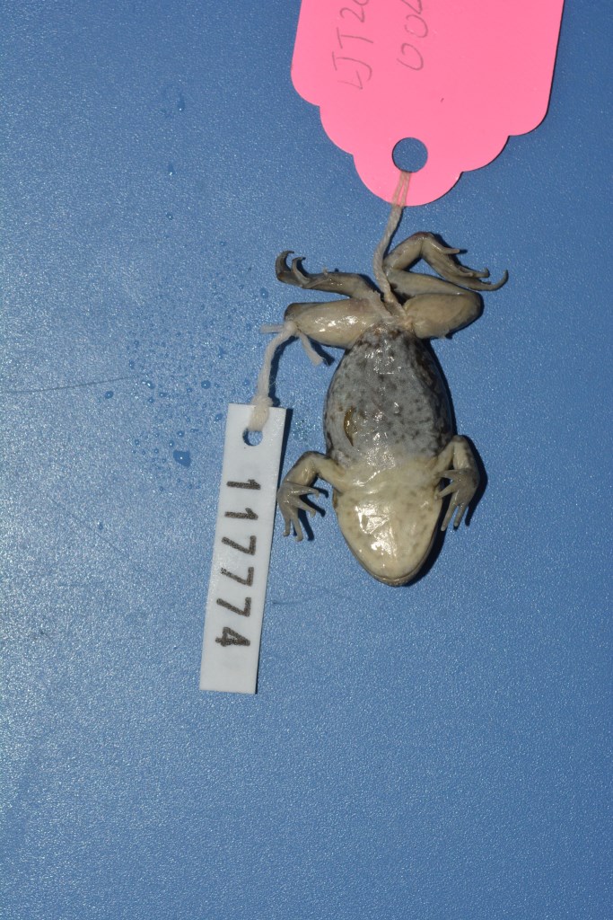 鉴定特征 本种外形与倭蛙Nanorana pleskei相近。本种无鼓膜和鼓环,无耳柱骨或退化呈短突;前喙骨细,骨化部分较多;体背有排列较为规则的长、短疣粒5-10行;背面深色斑纹不甚规则。蝌蚪口较大,第一行下唇齿略短于第二行。参考文献. 费梁,胡溆琴,叶昌媛,黄永昭等, 2009. 中国动物志 两栖纲 下卷 无尾目 蛙科. 北京:科学出版社.