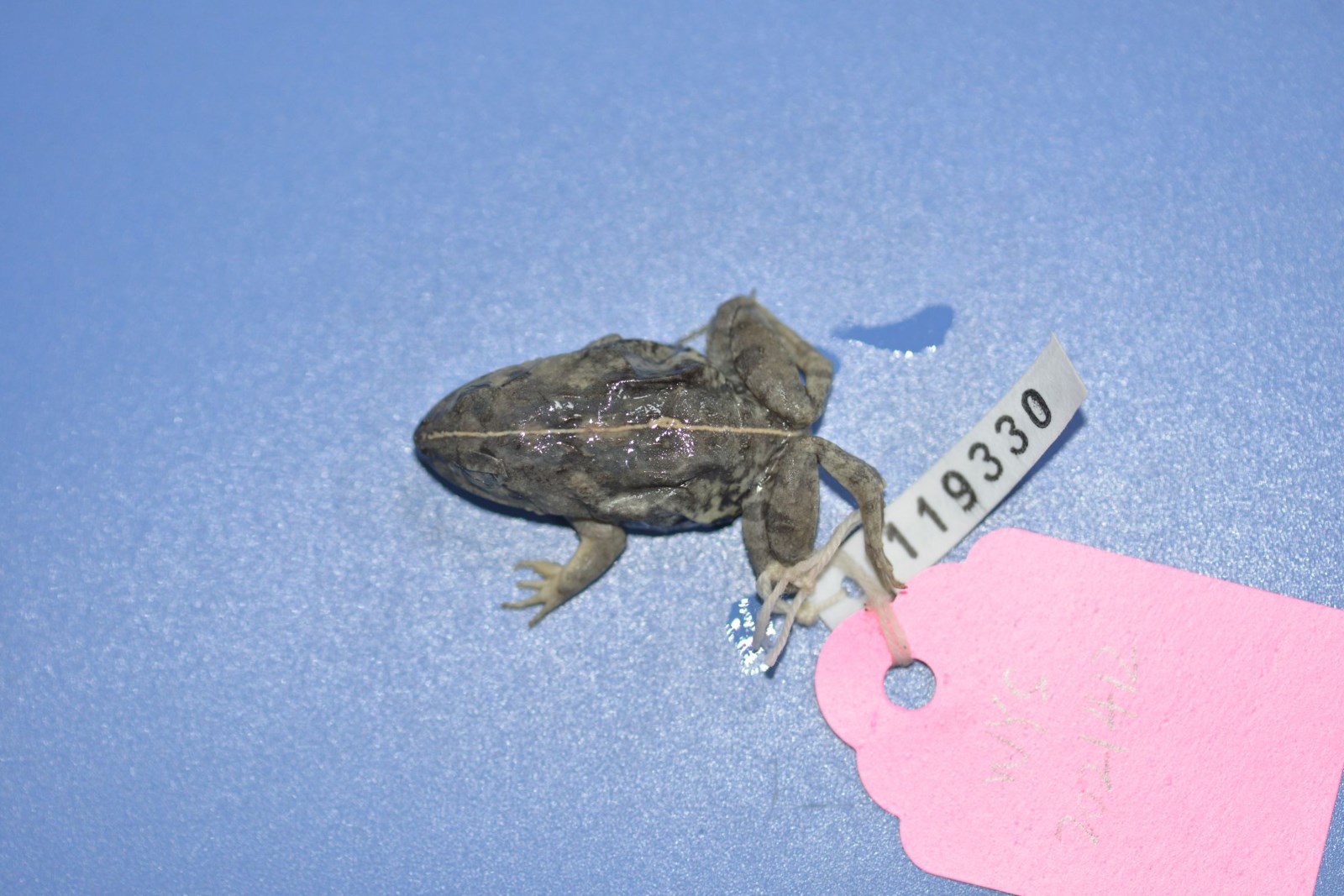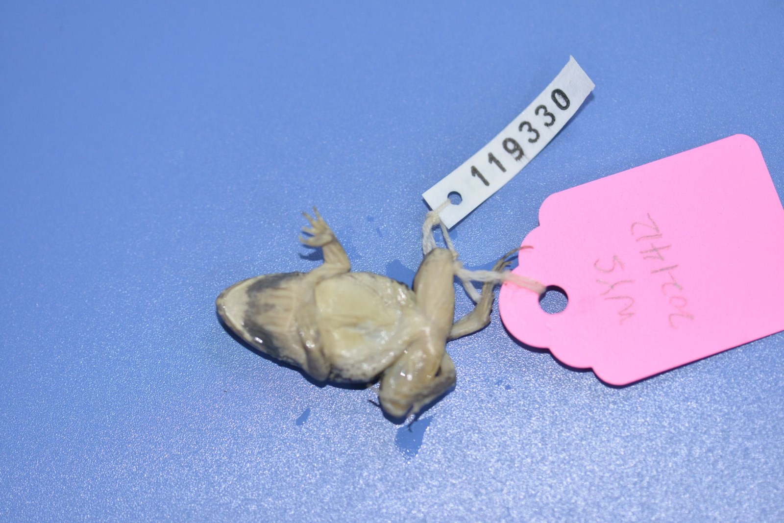 鉴定特征 体形小,体长50~55毫米。趾间半蹼。吻部较尖,上下唇有6~8条黑纵纹;两眼间有“V”字形斑,肩部一般有“W”字形斑,有的还有宽窄不一的青绿色或浅黄色脊线纹。背面灰橄榄色、深灰色或棕褐色,有的杂以赭红、深绿色斑;无背侧褶,有许多分散排列、长短不一的纵肤棱。雄蛙有灰黑色单咽下外声囊