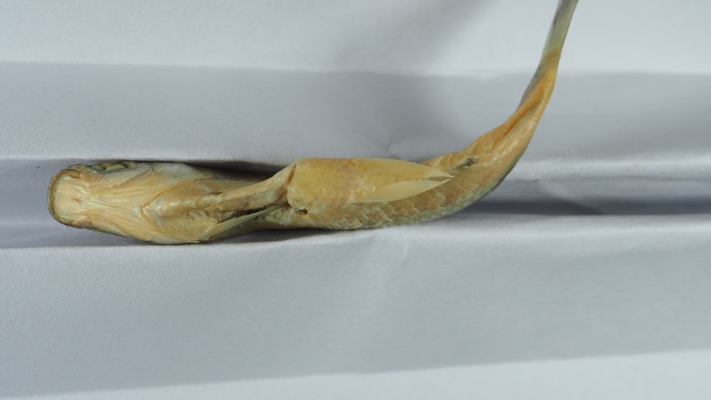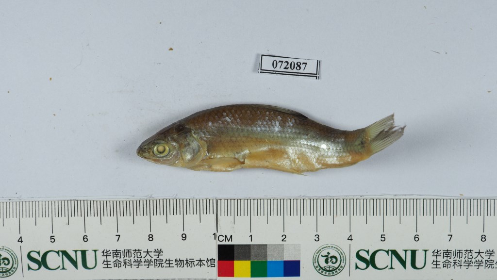 背鳍条3,11;胸鳍条1,18;腹鳍条1,8;臀鳍条3,5.鳃耙42。下咽齿3行,2.4.5~5.4.2。侧线鳞39[8/(5~V)]41;背鳍前鳞不规则;围尾柄鳞22。标准长为体高的3.3倍,为头长的4.4倍,为尾柄长的6.8倍,为尾柄高的7.3倍·头长为吻长的2.1倍,为眼径的5.3倍,为眼间距的1.7倍。体较高,侧扁,背前部轮廓线呈弧形,背后部斜直,腹部国·头侧扁,头高比头宽为大·吻圆钝,稍向前突出,吻端背部、腹面、两侧以及眼前部都有密集的小珠星,吻长大于眼后头长;吻皮较厚。