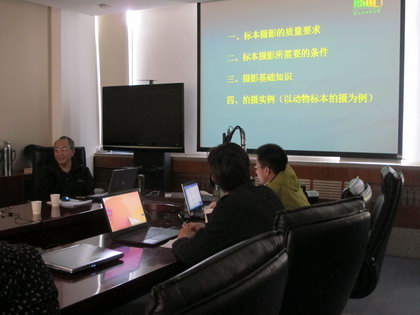 陈军研究员介绍了平台项目的背景,取得的进展以及目前工作的重点,希望能利用本次技术培训会切实解决工作中存在的实际问题,提高工作效率。李大立高级工程师对标本数字化中的必填项要求、运行服务管理上报表格进行了解答,对数字化中存在的普遍问题进行了说明,各单位针对工作中存在的实际问题进行了讨论。国家动物博物馆买国庆高级工程师做了动物标本摄影的专题报告,介绍了标本摄影的基本配置、相机基本功能,结合实例介绍了标本摄影的技巧,并解答了大家在标本拍照中遇到的一些问题;张魁艳工程师对主要应用于微小标本拍照的三维超景深成像系统进行了介绍和现场演示,使大家对标本图像采集的两种主要技术方法有了直观了解。项目秘书张莉莉副研究员针对项目管理要求,对平台全年任务要点做了简要介绍,强调了必须按时按量进行任务提交,以顺利完成平台工作。与会人员还参观了国家动物博物馆标本馆和展示馆,对国家动物博物馆标本保藏、制作、数字化流程以及科普展示有了实际了解。