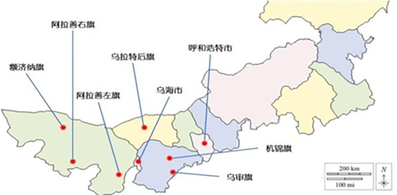 图 1 2025 内蒙古高原荒漠半荒漠资源昆虫和无脊椎动物调查主要采样地区及考察人员