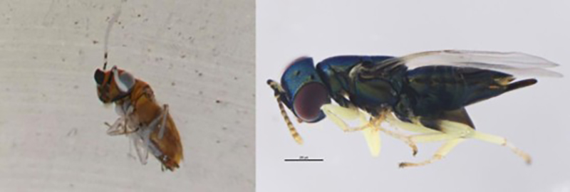 图 2 跳小蜂新记录种 Anagyrus pseudococci(左)和 Psyllaephagus populi(右)