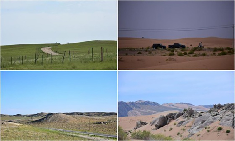 图 5 内蒙古中西部的草原、沙漠、丘陵和山峰