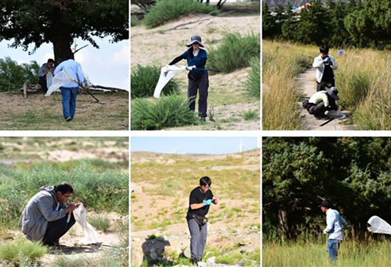 2025年8月15日至9月5日,考察队自北京出发,沿乌审旗-鄂托克前旗-鄂托克旗-阿拉善左旗-阿拉善右旗-张掖市-酒泉市-额济纳旗-杭锦后旗-磴口县-杭锦旗-乌拉特前旗环线再经呼和浩特返京。在内蒙古中西部开展了为期21天总里程6000余公里的无脊椎动物多样性调查(图1)。此次共采集到标本约2万余号,包括鞘翅目、半翅目、膜翅目、直翅目和脉翅目等400余种昆虫,此外还采集了蜘蛛800余号,约20种。此次调查为内蒙古中西部高原-荒漠地带无脊椎动物多样性研究提供了新的数据支持,为生态保护、沙漠治理和生物多样性监测提供了重要的科学依据。