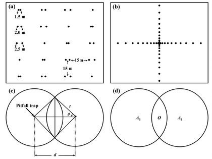 针对这个科学问题,戈峰研究员带领的种群生态与全球变化研究组提出了一种基于“双圆”陷阱设计的土壤昆虫估计新方法。该方法主要是通过采用多组不同直径距离尺度的圆圈(简称为“双圆”)陷阱,诱集土壤昆虫的种群数量;在此基础上,进一步结合诱饵对该土壤昆虫的有效范围,从而可准确地估计该土壤昆虫的种群密度。这项研究成果,不但从理论模拟到田间试验验证了该双圆法对土壤昆虫种群密度估计的可靠性,而且还发现这种方法对其他非优势土壤昆虫种类的也适用,甚至对灯诱或信息素诱集的物种也提供了一个种群密度估计的新方法。
