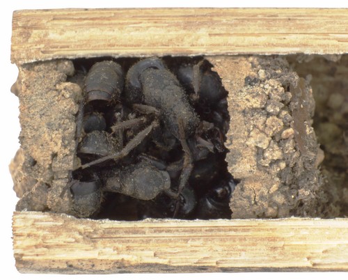 这项研究和团队得到德国DFG和中国国家自然科学基金委的资助(www.bef-china.de)。该团队在中国东南部亚热带森林种发现并描述了一个蛛蜂新种及其有趣的筑巢行为。这个新种,Deuteragenia ossarium,用蚂蚁尸体来填充一个小室,从而封住巢穴来保护她的后代。每个蛛蜂母亲一般都在巢穴种构建几个小室来孵育后代。每个小室中都有一只被麻痹的蜘蛛作为小蛛蜂幼体的食物。新发现的“蚁墙蜂”也不例外。但和其它已知蛛蜂物种不同的是,她最后的小室不是空置,而是填满了蚂蚁的尸体。