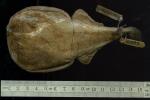 体盘椭圆形,宽稍小于长;尾宽短,稍短于头和躯干之长,比体盘为长,侧褶很低,几消失。吻颇长,前端广圆;吻软骨柔软,细长,正中一条。眶前软骨很发达,侧位,分作多枝,里侧以韧带连于吻软骨基侧。眼微小,埋于皮下,位于喷水孔里侧上角。喷水孔颇大,椭圆形。边缘光滑,平坦或微突起。鼻孔小;鼻口沟很短;前鼻瓣连合为一口盖;后鼻瓣短小,具一半环状薄膜。口小,平横,口前具一深沟,能突出;口宽约等于口前吻长2/5;唇软厚而皱;上唇分两侧和中央三部;下唇宽而连续。牙细小而多,平扁,齿头低平后突;齿面不外露。鳃孔很小,直行排列。胸部前延,到达鼻囊前缘的水平线,前端宽广地被软吻软骨及眶前软骨隔开;前后缘连续,后部狭直,无里缘和后角。腹鳍前角圆钝,显著突出,后缘深凹,里缘很短可消失,后角尖小。背鳍一个,颇小,起点在腹鳍基底之后,前、后、里缘分明,前后角圆钝,与尾基的距离稍短于背鳍基底长。尾鳍颇宽大,上叶比下叶大,后缘与下缘斜圆形。背面灰褐色或赤褐色,具不规则暗色斑块。尾侧白色。体侧在胸、腹鳍之间白色;腹面白色,体盘与腹鳍边缘白色;有时胸、腹外侧和尾之后部褐色。