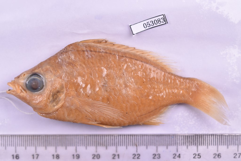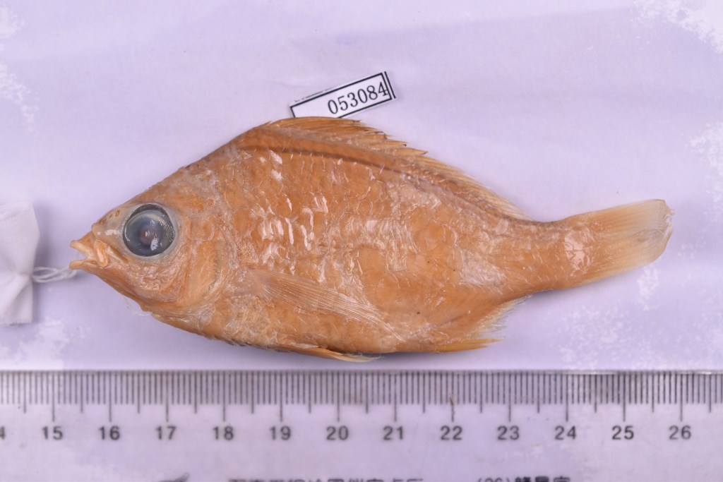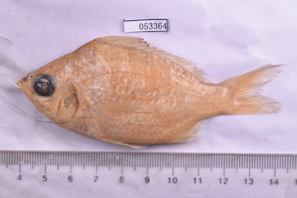 描述短棘银鲈,属鲈形目、银鲈科下一属,体卵圆形,侧扁;体长为体高2.2倍,为头长3.5倍;体背面狭窄,腹面钝圆,背腹缘均呈弓状弯曲,体高以背鳍起点处为最高;尾柄侧扁而短,其长与高约相等。头中等大,头长为吻长3.3倍,为眼径2.9倍,背面微凹,两侧平坦。吻钝尖,吻长短于眼径。背鳍Ⅸ-10;臀鳍Ⅲ-7;胸鳍16;腹鳍I-5;尾鳍17。侧线32。眼较大,侧位而高,距吻端与鳃盖后上角约相等。眼间隔宽,稍凹,其宽等于眼径。鼻孔二个,圆形,位于眼前上方,紧相邻,后鼻孔稍大,前鼻孔具鼻瓣。口较小,端位,前颌骨突起呈柄状,向后伸入额骨嵴间的凹陷中,口能活动向前下方伸出。眶前骨甚狭。上颌骨短小,两端游离,可自由活动。两颌牙棚小,呈绒毛带状,犁骨、腭骨及舌上无牙。前鳃盖骨边缘平滑,鳃盖骨无棘,假鳃不明显,鳃耙5+7,钝尖而短。体被薄圆鳞,在颊部及后头部被鳞。背鳍及臀鳍基底具薄的鳞鞘。侧线完全,与背缘平行。背鳍具9鳍棘,10鳍条,鳍棘部与鳍条部相连续,背鳍起点位于胸鳍基的上方稍后,背鳍鳍棘尖锐,以第3鳍棘为最长,较臀鳍第二鳍棘稍长,而短于头长;向后各鳍棘渐渐减短,相差不大;鳍棘部基底与鳍条部基底约等长,最长鳍条短于最长鳍棘。臀鳍具3鳍棘,膜不与峡部相连。鳃耙3~5+7~8。体被薄圆鳞,头部除吻及前颌无鳞外,其余均被鳞。背鳍及臀鳍基底具有薄的鳞鞘,侧线完全,与背缘平行。