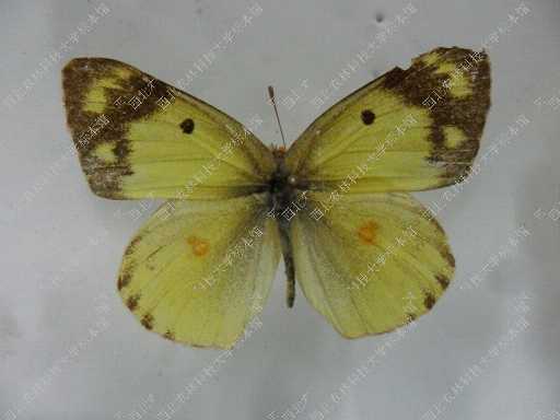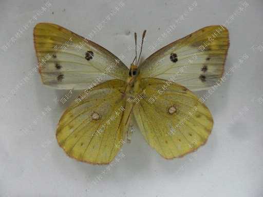 成虫:翅展:45-55mm。雄蝶翅黄色,前翅外缘有宽阔的黑色横带,其中不镶嵌1列黄色斑纹;中室有1枚黑色的小圆斑。后翅外缘的黑色纹多相连成列,中室端的圆斑点在正面为橙黄色,后面则呈银白色,外围褐色框。雌蝶有二型:一型翅面为淡绿色或淡白色(斑纹与雄蝶相同),容易与雄蝶区别;另一型翅面为黄色,与雄蝶完全相同。翅反面颜色较淡,亚端有1列暗色斑。