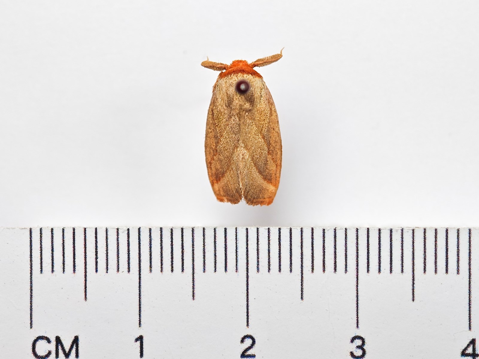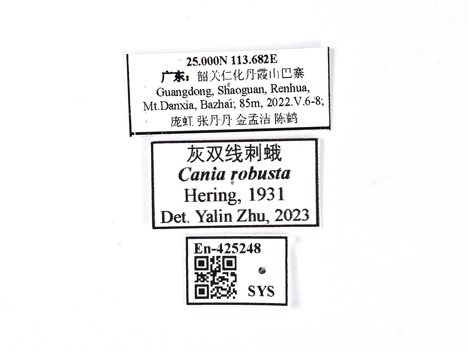 幼虫: 老熟幼虫体长21mm左右。扁椭圆形,背中微拱,深绿色。 体背有4列深绿色的枝刺,边缘2列较长,向四周平伸;背侧2列很短,呈刺瘤状,刺毛也少。背线紫褐色。背上有4个较大的不规则的紫褐斑,有的个体不明显。亚背线上有1列红点纹。