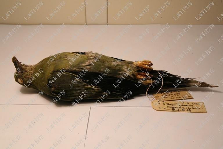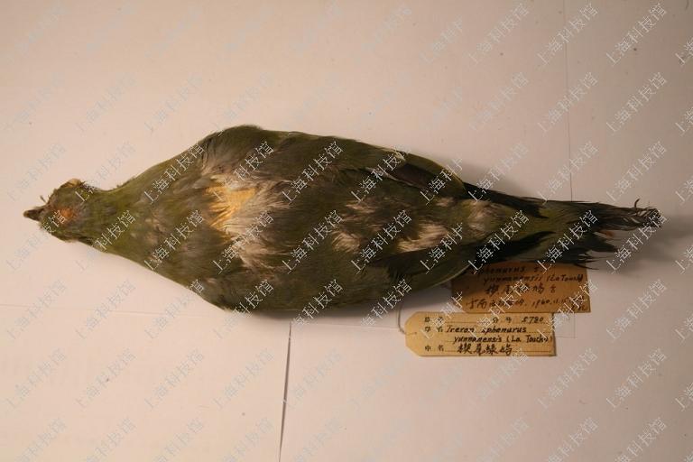 郑作新:1991:形态描述 鉴别特征 尾张开时呈钝角的楔形;第三枚初级飞羽内翈无凹入处;最外侧二对尾羽有黑色次端斑。雄鸟背及翅上有栗色区。 形态 (依据云南所采指名亚种标本) 雄性成鸟 头、颈亮黄绿色,头顶沾棕橙色;背、肩及大覆羽的一部分自绿转灰色,背肩部微沾栗红色;下背至尾上覆羽暗绿至橄榄绿色;中央尾羽橄榄绿色;外侧尾羽渐转灰绿至灰黑色,最外侧二对具宽阔的黑色次端斑,及形较窄狭的灰色端斑。翼上大覆羽的基部及中、小覆羽紫红栗色,形成翼上一大块斑,但翼弯处以及翼下覆羽、腋羽等同为石板灰色;初级覆羽及飞羽黑色,大覆羽、初级覆羽及初、次级飞羽各外侧几枚的外翈端段具狭形的黄色边缘。下体亮绿黄色,但胸为略沾绿的橙黄色,各羽基更多少沾橙粉红色,体侧、尾下覆羽及覆腿羽绿黑色而具黄色的羽端或外缘,长的尾下覆羽则周围有宽阔的黄色至棕黄色边缘。 雌性成鸟 上体的绿色部分较雄鸟的暗晦,并以暗绿色代替了雄鸟的栗色;头顶及胸部为淡绿黄色代替了雄鸟的橙色。 幼鸟似雌成鸟。 虹膜外圈红色,内圈蓝色;眼周裸皮浅蓝色;嘴端灰沾橙色,基部浅蓝;脚珊瑚红色。 量衡度:(注:见图1) 郑作新:1991:生物学描述 生态 单个、成对或结数只至二三十只的集群活动于山区阔叶林或混交林中,一般在海拔1 000—3 000米的范围,早上及傍晚常见在有野果的树上觅食,往往抓握着悬垂的小枝取食野果。据中国科学院昆明动物研究所鸟类组分析6月份3个鸟胃的结果,见内有樱桃(3次)及黄泡果(1次)。郑作新等(1983)报道,在西藏6—8月所采14只鸟,胃内全部为果实。李桂垣等(1985)于5月在四川屏山剖检1鸟胃,其内含物全为樱桃;6月在石棉所采的8只胃,其内也全为野生植物的果实和种子。可见此鸟似乎纯以野果及种子为食。鸣声悦耳,似“ke-gu-gu”之声,富有箫笛的音韻。 繁殖期约始于4月,雄鸟在发情时可见一系列特殊动作,如点头、挺胸、张展翅、尾地跳来跳去、发出“gu-gü”声、不时佯作在地面喙食状;雌鸟则不时回应以同样的叫声。作巢于林间高大的树上,且多选取特异高出的位置。巢平台状,甚简陋,仅用少量枯枝条堆放而成。据Goodwin (1967),楔尾绿鸠自4月至8月产2窝卵,每窝2枚,白色。孵卵经13—14天出雏,再经12天幼鸟出飞。 乌鸦及鹰类为楔尾绿鸠的天敌。楔尾绿鸠筑巢常靠近卷尾类巢区,因后者是驱赶猛禽最凶猛的小鸟,在野外,常见一群卷尾追赶乌鸦的现象。 郑作新:1991:分类讨论 分类讨论 La Touche (1921)谓云南东南部蒙自附近标本雄鸟的尾羽和下体羽色不同于指名亚种,因而订立为T.s.yunnanensis。郑作新(1962)发表指名亚种在四川西南部的分布,并指出这里标本的翅膀较长(5♂♂为179—189),但没有提到羽色问题。随后,郑作新(1976)把云南各地的标本都归入云南亚种T.s.yunnanensis。中国科学院昆明动物研究所(1980)认为上述二类群并无La Touche所提的羽色上的差异,同意以翅长来划分,但按翅长则把云南西部自贡山至潞西划入指名亚种分布范围,澜沧江以东的景 东、勐腊、富宁等地才是云南亚种分布区,前一范围者翅长(10♂♂)为177—186和(2♀♀)为167, 172毫米;后一范围者翅长(2♂♂)为169,172和(4♀♀)164—175毫米。王子玉(见郑作新等,1983)亦根据翅长把西藏标本划为云南亚种。 经我们反覆研究觉得国内各地标本,正如中国科学院昆明动物研究所报道的一样,在羽色上不存在与指名亚种可资区别的特征,包括Goodwin (1967)所提“云南亚种只有雌鸟羽色稍较暗绿”的区别特征。另外,以翅长划分该2亚种也存在问题。按上述划分的结果是:指名亚种分布自克什米尔,经我国川南、滇西至缅甸;云南亚种分布自西藏南部,跨越过指名亚种分布区达云南南至东南部直抵越南北部,后者的分布现象实令人迷惑,况且中国科学院昆明动物研究所报道的数据仅从少量的标本比较而来(如前一亚种仅有2雌鸟,后一亚种仅有2雄鸟);即使这样在雌鸟的翅膀量度上也不符合文中以后一亚种体型比前一亚种为小的说法。更值得注意的是:我们还量得云南东南部新平、河口及昆明等本属云南亚种分布范围的地方有4♂♂翅长为183—188, 3♀♀为176, 178, 186毫米,达指名亚种的量度,甚至超过,显然翅长也不能作为亚种区分的特征。其实,Ali et Ripley(1969)所记述指名亚种的翅长(♂♀,未指名标本数)为169—187毫米,这就包括了国内 所列的2个亚种的量度。 由上可见,羽色和体型上均找不到可划分亚种的明显特征,中国的楔尾绿鸠就只适宜定为单一亚种,均属指名亚种。 亚种分化 楔尾绿鸠总共有2个亚种,我国只有1个亚种。 郑作新:1991:经济意义 经济意义 除能提供美味的肉食外,还因羽色美丽、鸣声悦耳而可供作笼鸟观赏。