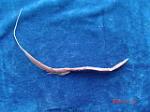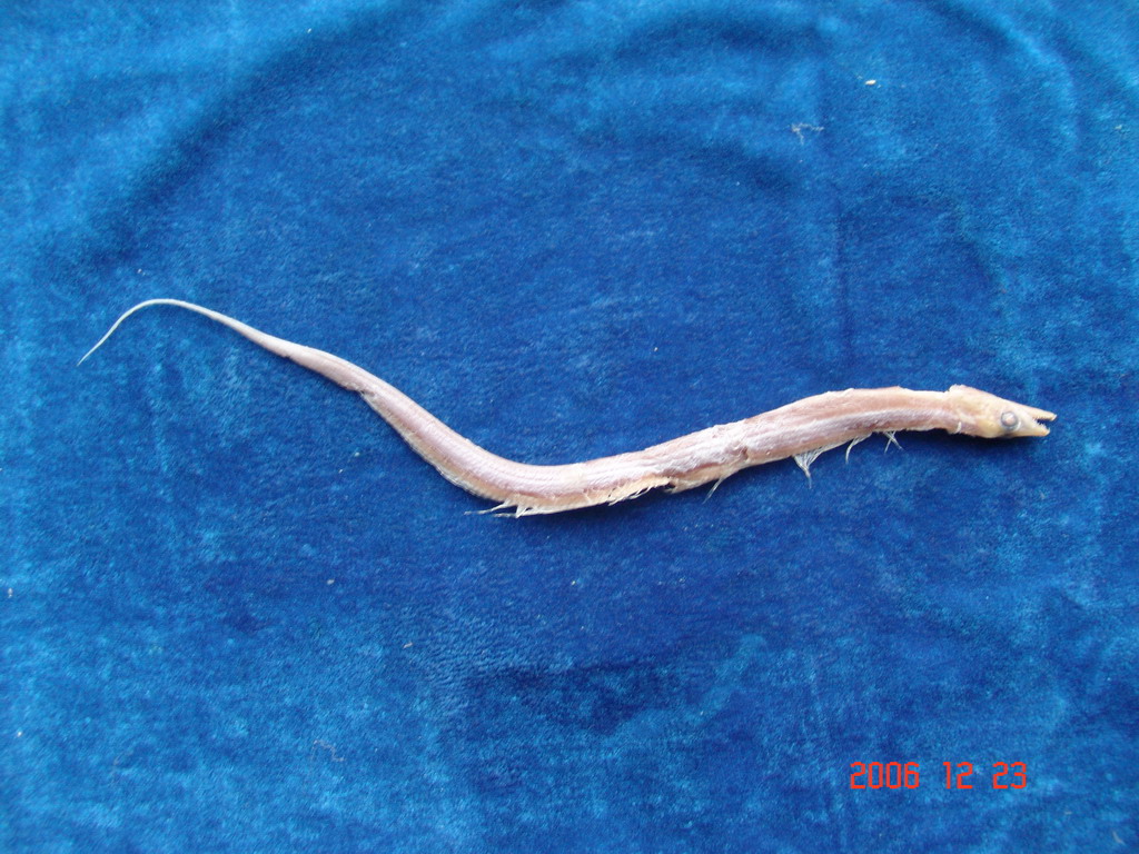 小带鱼(学名:Eupleurogrammus muticus)为带鱼科小带鱼属的鱼类。分布于印度洋北部沿岸、东至日本、南至印度尼西亚以及沿海等,属于近海暖温性鱼类。其多栖息于沿海浅海的中下层。体甚侧扁,延长呈带状,背腹缘平直,向后渐细呈鞭状。头狭长,侧扁,背面凸起,两侧平坦,吻端尖突。时底拖网渔具和沿岸定置渔具可兼捕到。可鲜食。欲称带鱼条子、鳞刀梢、小金叉。硬骨鱼纲、鲈形目、带鱼科。系暖温性近海中下层鱼类。体甚侧扁,延长呈带状,背腹缘平直,向后渐细呈鞭状。头狭长,侧扁,背面凸起,两侧平坦,吻端尖突。口大,前位,前部较平直,后部斜裂。下颌长于上颌。齿发达,上颌前端有钩状犬齿3枚;下颌前端有犬齿2枚,口闭时外露于上颌前端。眼中大,侧上位;眼间隔圆凸,中间有1纵脊至吻端。鼻孔每侧1个。鳃孔大。尾部长稍大于全长2/3。背鳍1个,基底几乎与背缘等长,鳍条较长。胸鳍小,侧下位,鳍条上翘,向下渐短。腹鳍退化,仅留1对小片状突起。臀鳍由甚短的分离小棘组成,仅棘尖外露皮外。尾鳍消失。体光滑无鳞。有侧线,在胸鳍基上近平直延伸至尾端。体银白色。尾黑色。各鳍均灰色。全长一般为10—40厘米。喜栖息于浅海的江河口附近咸淡水混合处水域。有时也进入淡水索饵。主要食物为小型鱼类、甲壳类。1龄可达性成熟。生殖期6—8月。卵生。我国沿海均有分布,现数量极少。有时底拖网渔具和沿岸定置渔具可兼捕到。可鲜食。