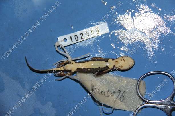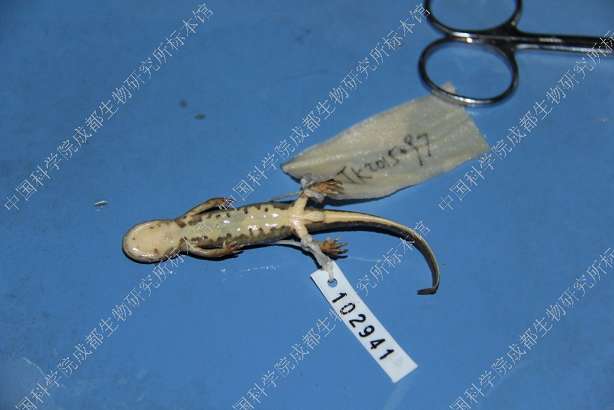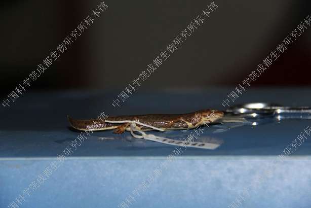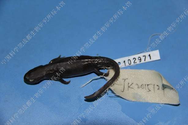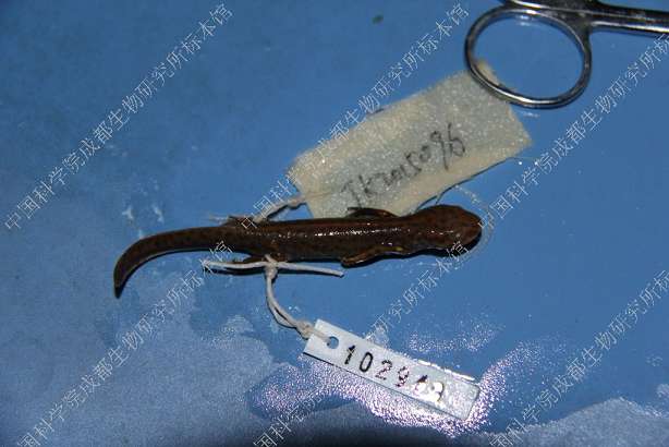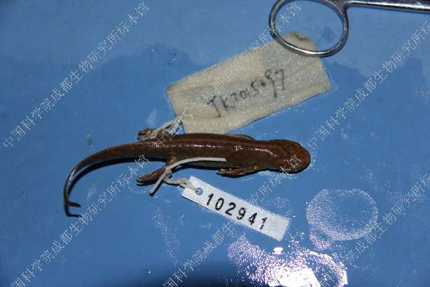 描述Small newt, with a total maximum length of 7-9 cm. Head shape oval in dorsal view. Snout truncate, projects slightly beyond mandible. Nostril on snout tip; eye large. Labial fold well developed. Inconspicuous longitudinal ridge posterior to each eye. Skull relatively narrow. Parotoid gland poorly developed. Gular fold usually absent. Skin finely granulated, venter and underside of limbs smooth. Vertebral ridge elevated and conspicuous. Four fingers and five toes, no webbing. Tail laterally compressed, tapers posteriorly; caudal fin distinct; tail tip bluntly pointed in female, rounded in male (Wu et al. 2010).