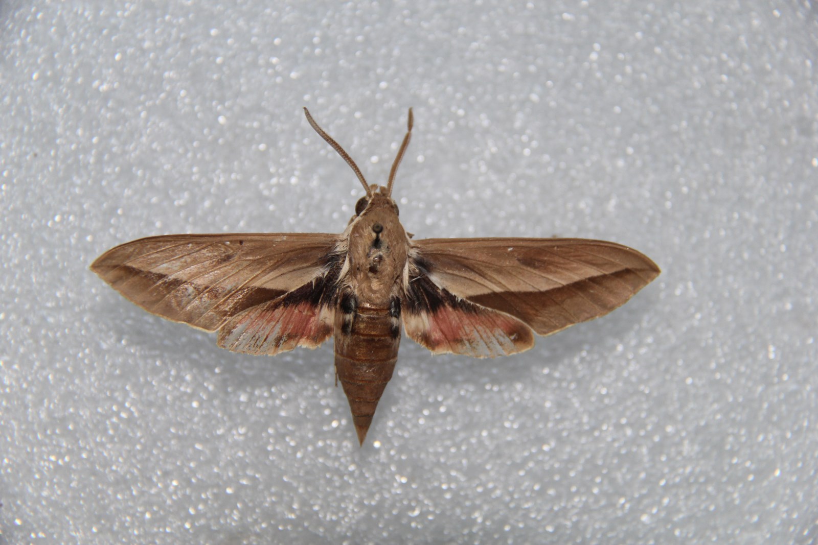 翅展70-90mm。体纺锤形,腹端尖。 头、胸暗灰褐色。腹部淡灰色。触角灰褐色。下唇须和足灰白色。前翅淡灰褐色,自翅端至后缘中央有1条暗褐色斜纹,斜纹自亚端部至后缘逐渐加宽。横脉纹点状,黑色,缘毛灰白色。后翅,黑褐色,中央有一条淡黄色横带,缘毛暗褐色。