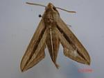 翅展65-72mm。头、胸褐色,胸部 背线黄褐色。两侧有橙黄色纵纹。腹部背线银灰色。触角灰褐色。下唇须灰色。前翅灰褐黄色,顶角至后缘基部有较宽的黑色斜带,下方有白色边,顶角至后角有三条褐色横带,中室端有一个黑点。后翅橙灰色,基部及后缘有较宽的灰黑色带。翅面灰黄色,有灰黑色横线及斑点,缘毛灰色。